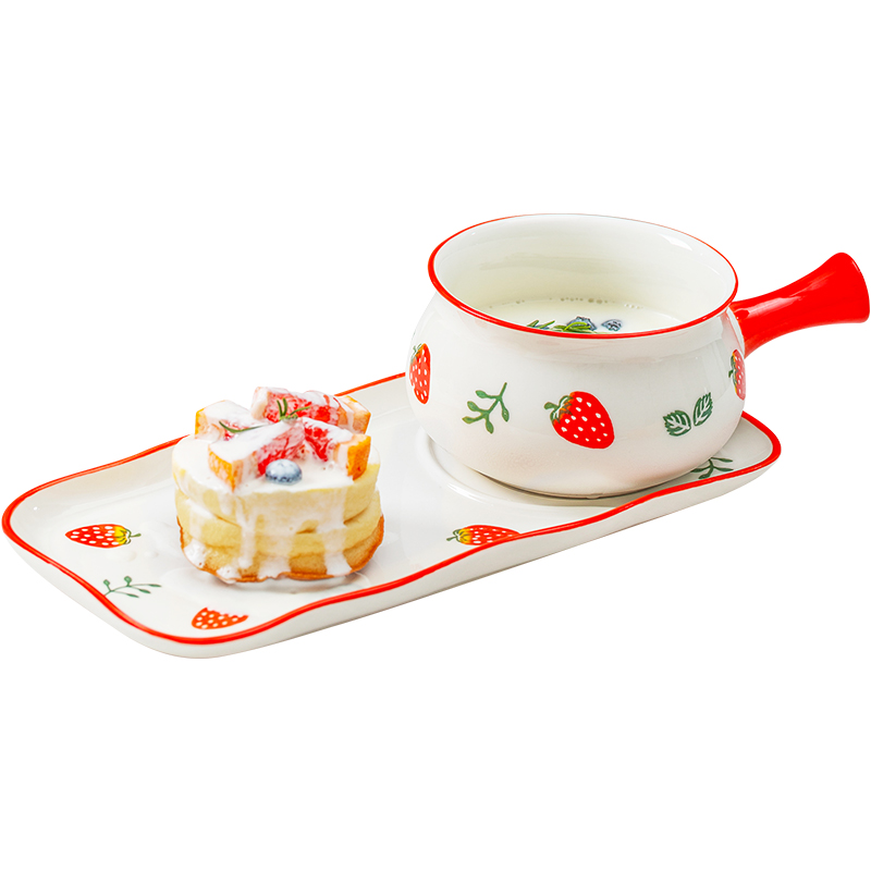 Breakfast Bowl Tray Suit cereal bowl Ceramic Handle Bowl One man Nordic Fruit Salad Bowl Home Day Style Cutlery