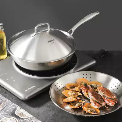 Jimei stainless steel wok 304 non-coated non-stick pan household induction cooker gas stove special thickened wok