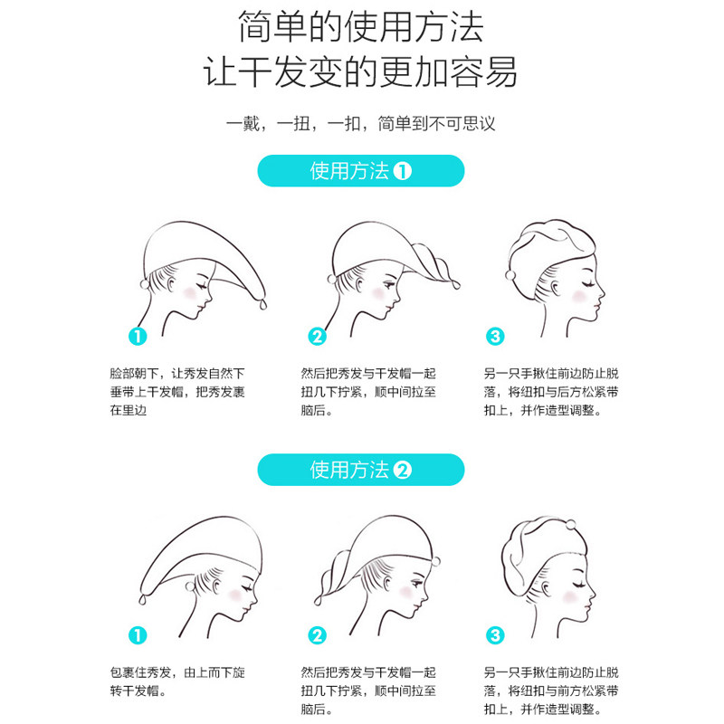 2 dry hair caps artifact water absorption quick drying women's bag turban headscarf shower cap towel Cute hair wipe dry hair towel