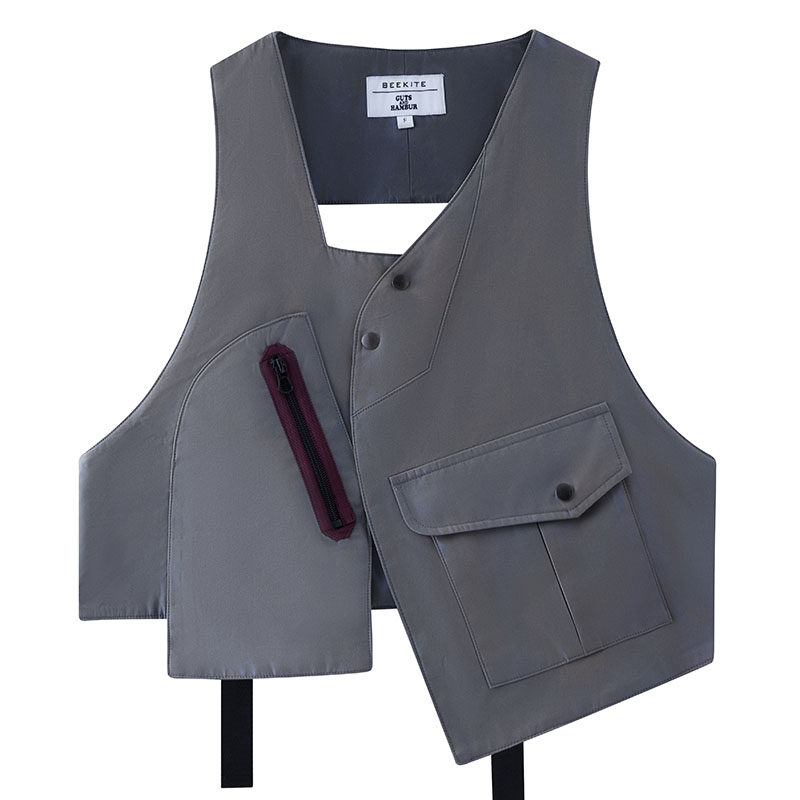 BEEKITE Irregular Tactical Vest Gradient Metal Color Adjustable Back Hollow Overlay Japanese Retro - Taobao