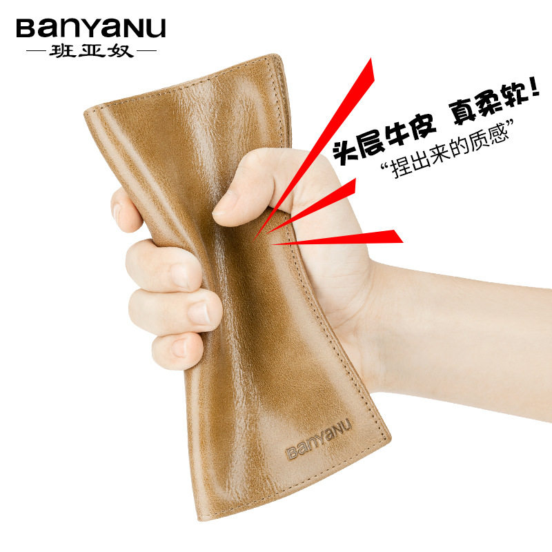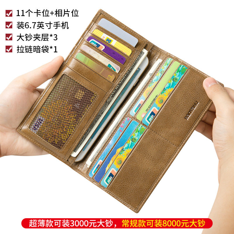 2021 New men's refined men's fine men's high gear yellow long version of cow leather hand with wallet genuine leather card bag explosion