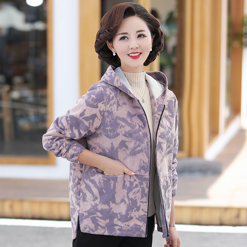 Mom spring and autumn jacket thin 50-year-old 60-year-old color corduroy jacket middle-aged women's new spring