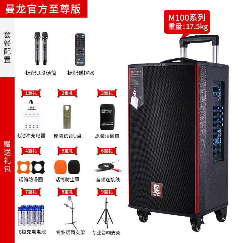Manlong square dance audio outdoor high-power K song wireless microphone net red live performance mobile trolley speaker