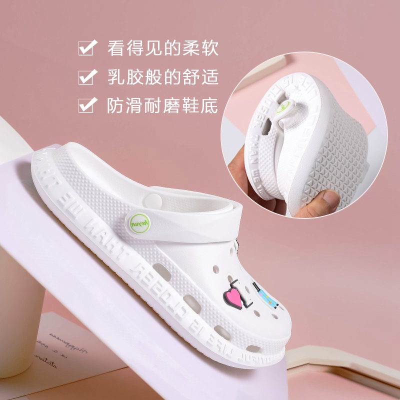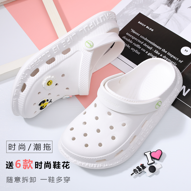 Hole Dongle Shoes Women Ins Tide 2021 New Thick Bottom Non-slip Nurse Baotou Semi Cool Slippers Women Summer Beach Shoes Outwear