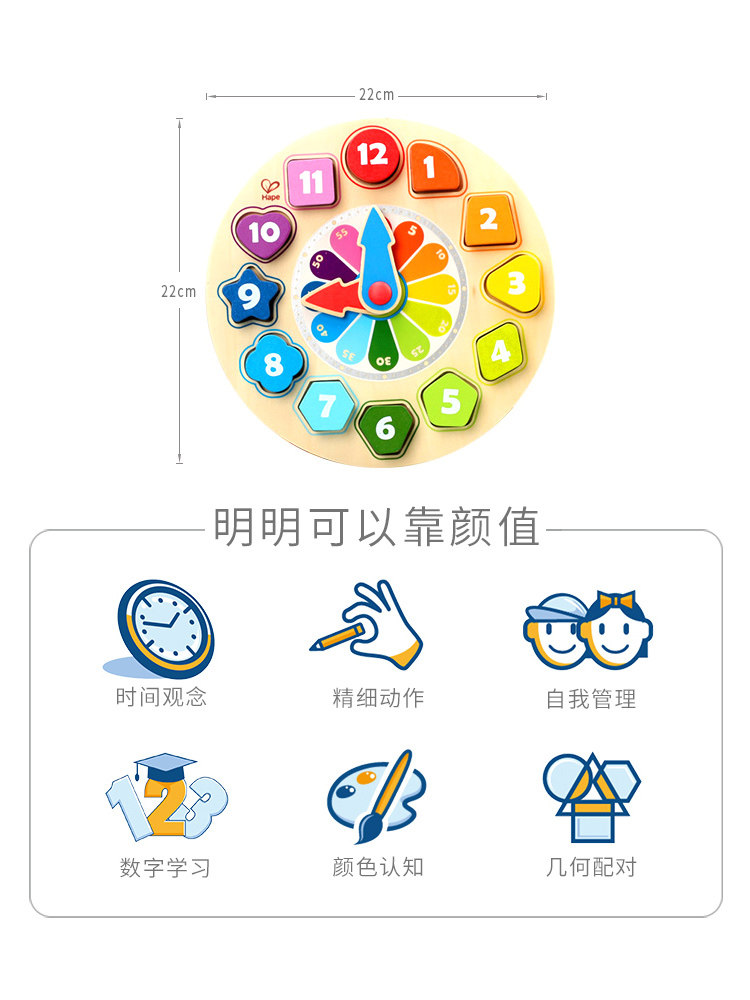 Hape Building Blocks Clock Early Teaching Shape Pairing Toys Children Time Cognitive Color Baby Digital Cognition Toys