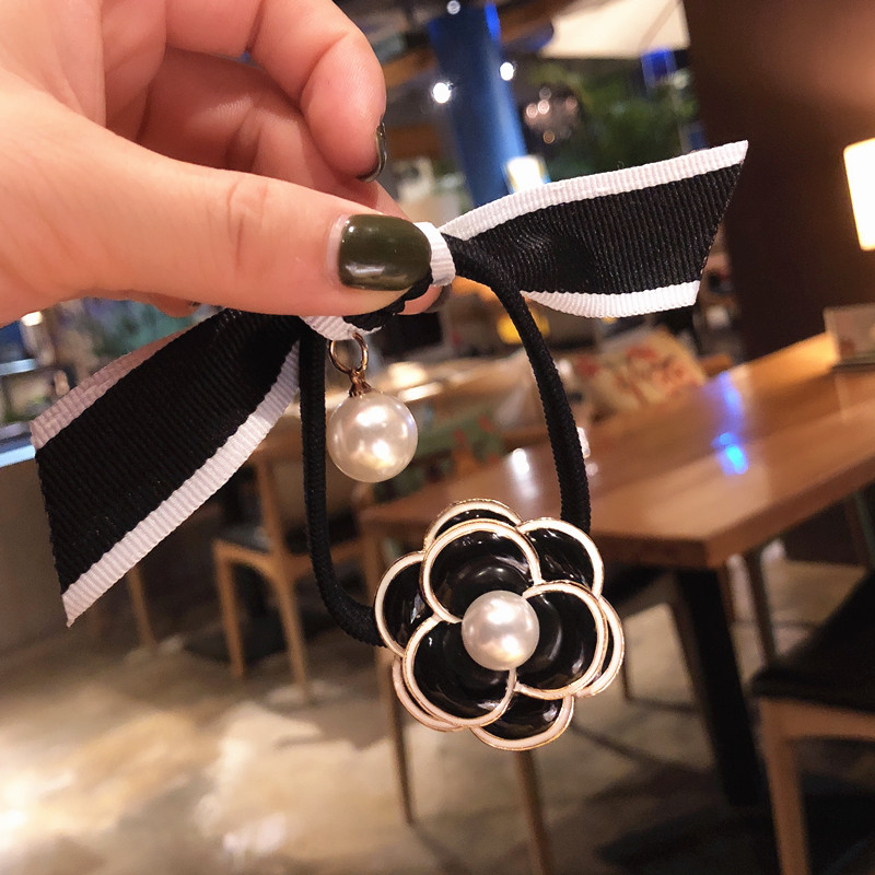 Korean fashion ins high-end big camellia metal hair ring small fragrant wind camellia rubber band high elastic hair rope