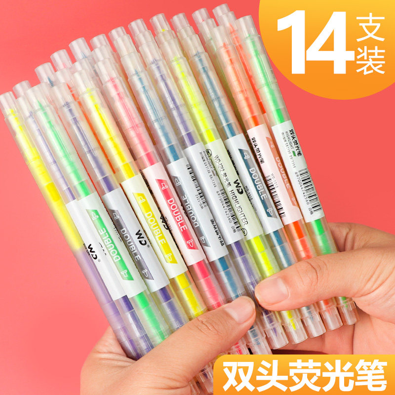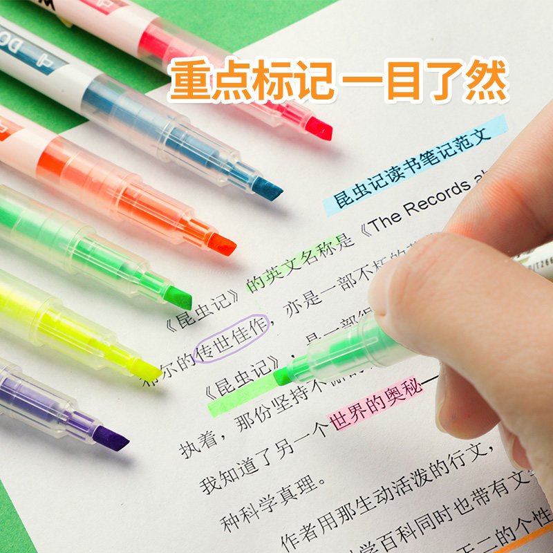 Large capacity 6-color fluorescent pen hand account light color dual-head fluorescent marker pen students use marker pens stationery supplies to take notes color silver pen rough strokes focus on a set of candy color set