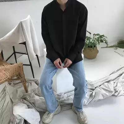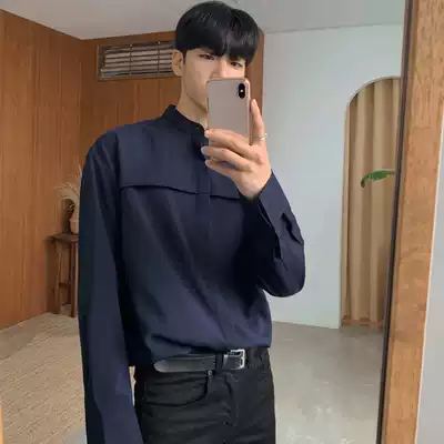 2021 new solid color long sleeve shirt men Korean version loose trend casual versatile Ruffian handsome men shirt no ironing