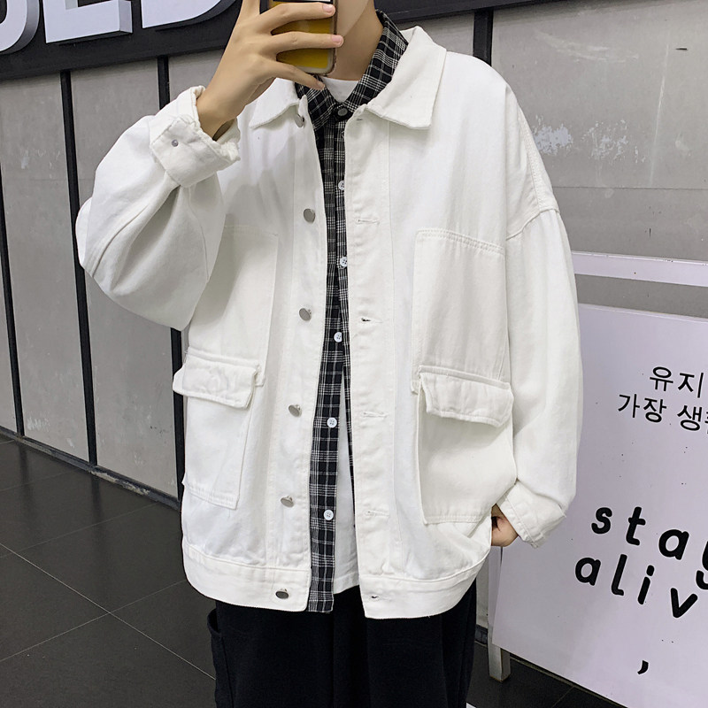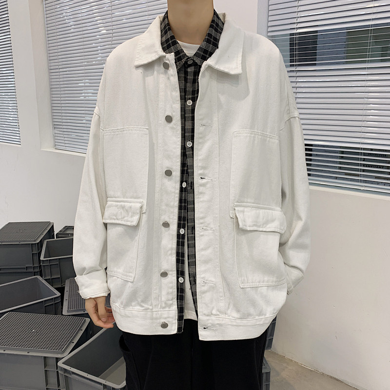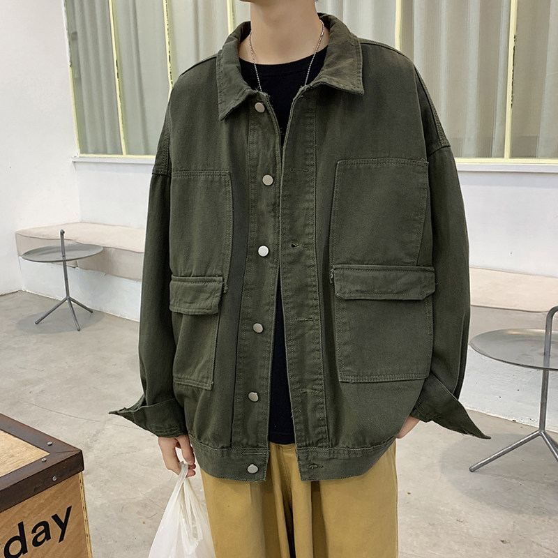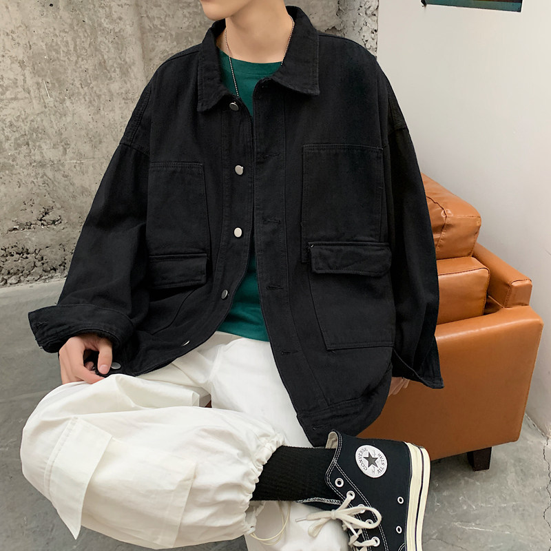 Port Wind Loose Denim Jacket Male Korean version Trend Multi-pocket jacket Fall Ins Tide Cards Students 100 lap upsets
