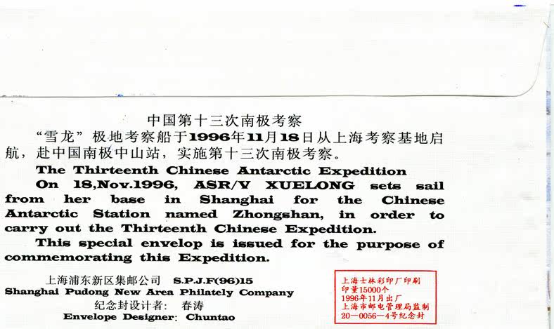 China's 13th Antarctic Expedition Commemorative Envelope