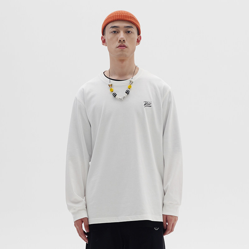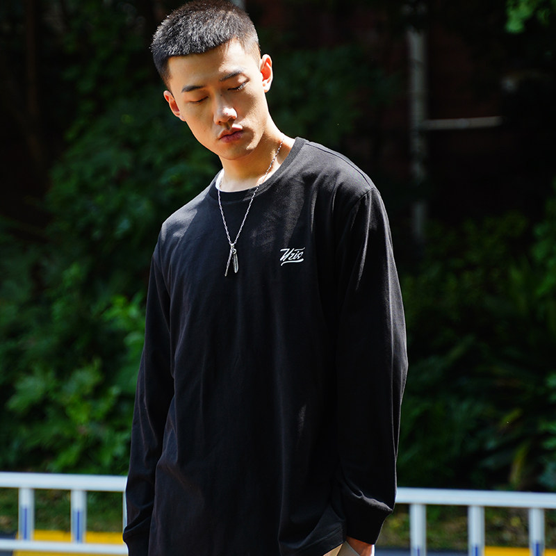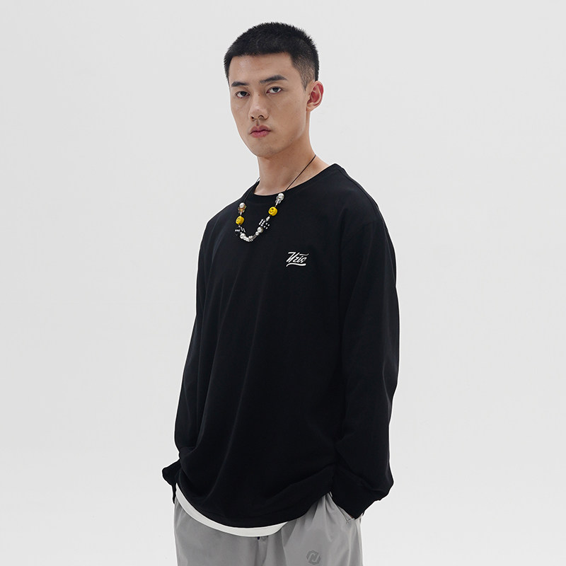 UZIS base black and white long sleeve t-shirt men's tide brand trend loose pure cotton pure color base underwear solid color