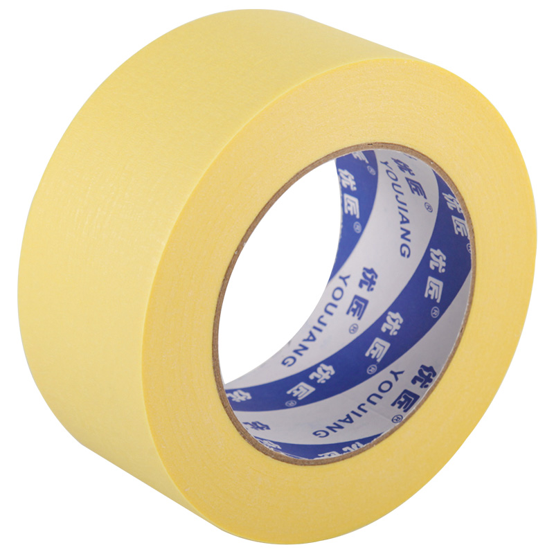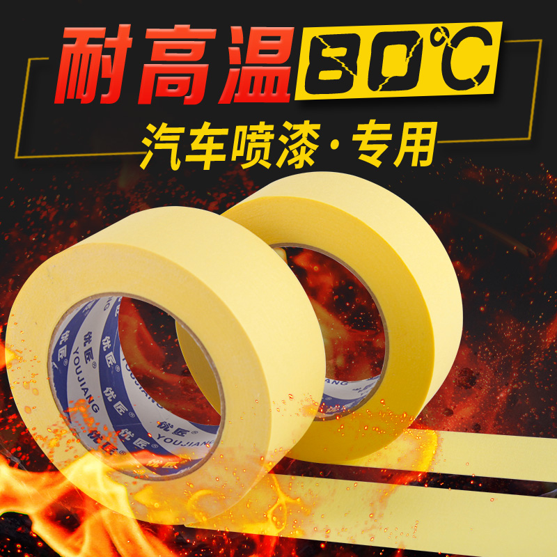 High temperature resistant 80 degrees yellow masking paper car spray paint spray paint protective film color separation paper tape paint with hand tear no trace no residual glue high viscosity beauty seam masking tape length 50 meters