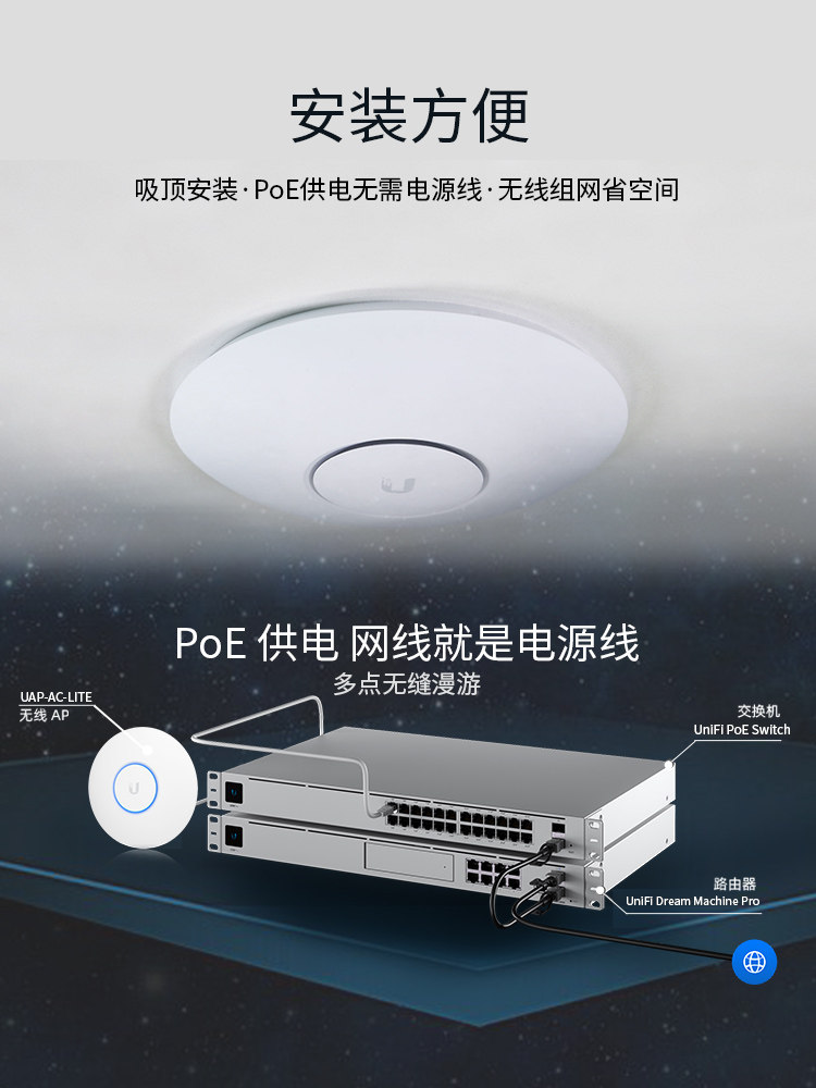 UBNT UniFi Gigabit Wireless Ceiling AP UAP-AC-Lite Home 5G Dual-Band WiFi High-Speed PoE Power Supply Covering Large Households with No Dead Spots in the Whole House