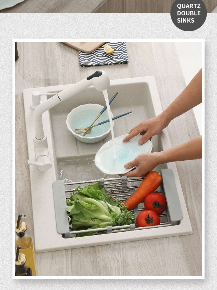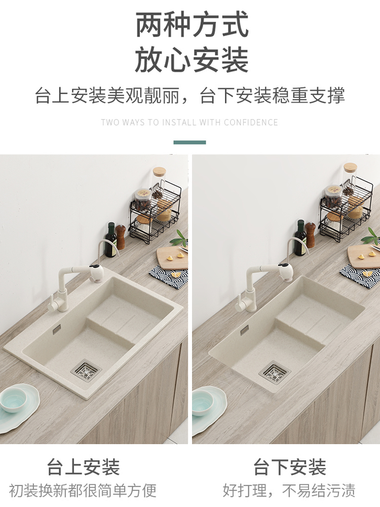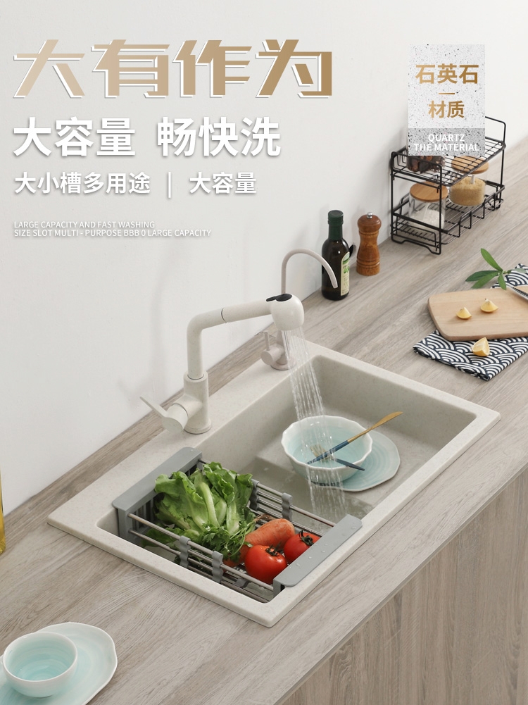 Quartz stone sink stepped high and low single-slot granite wash basin wash basin under counter basin kitchen oatmeal color