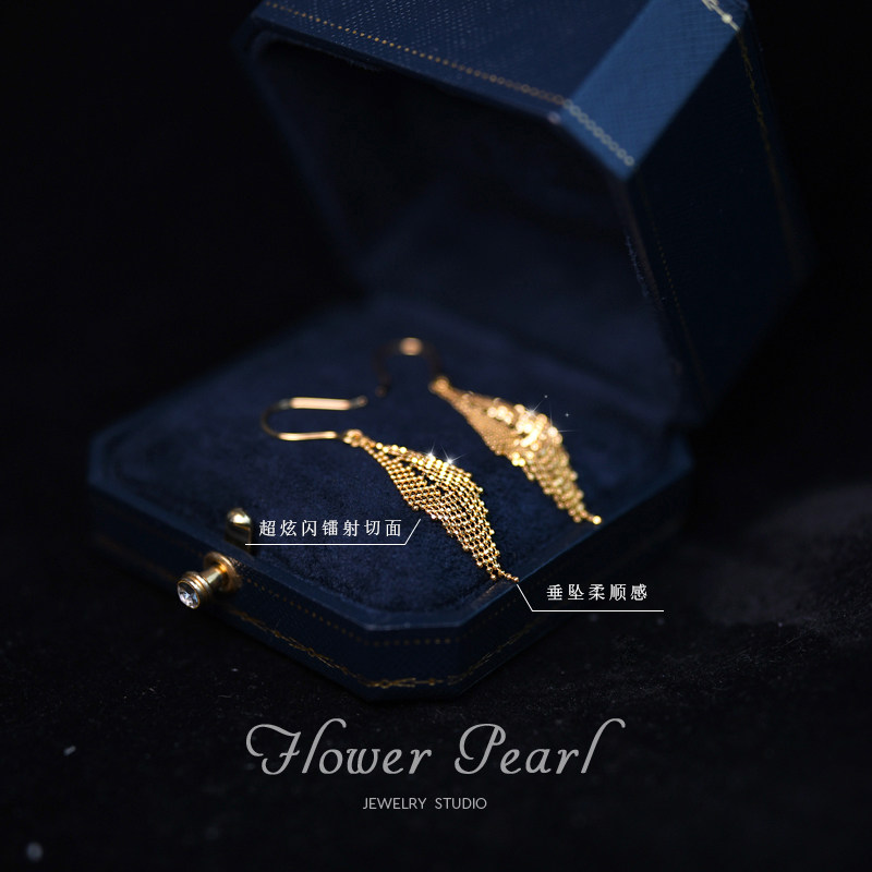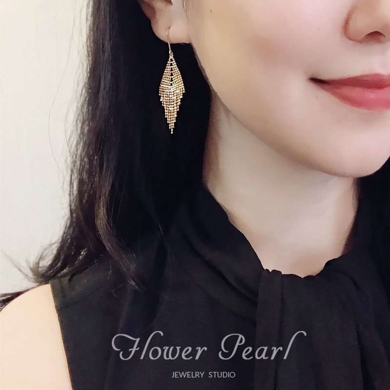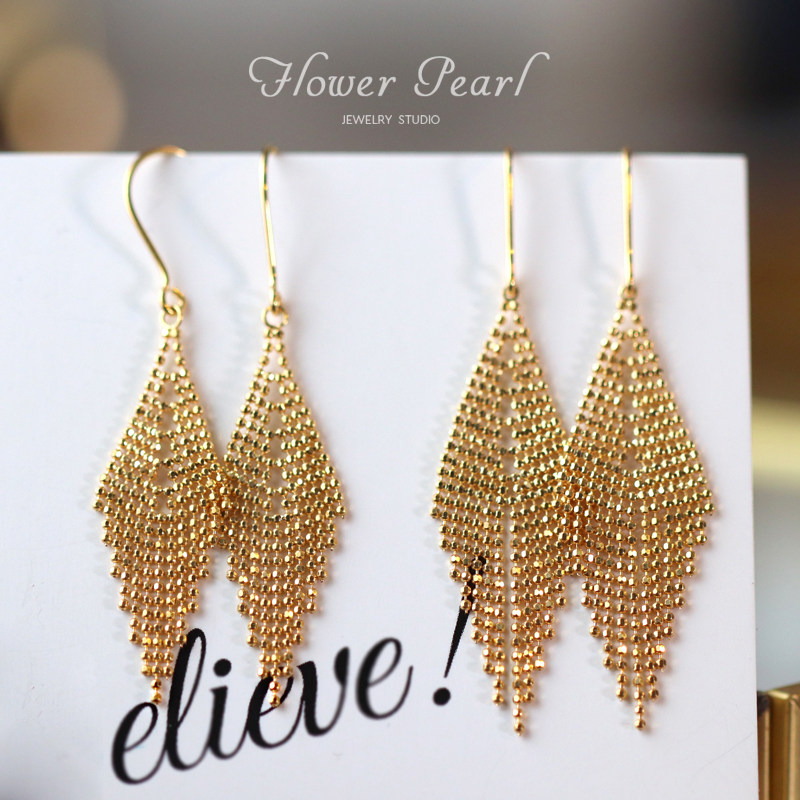 Yao Po Sparkling 18k Gold Japan Laser Process Pearl Pearl Necklace Pendant Streaming Su Rhomboid Ear Hook Earrings Earrings Earrings Pendant