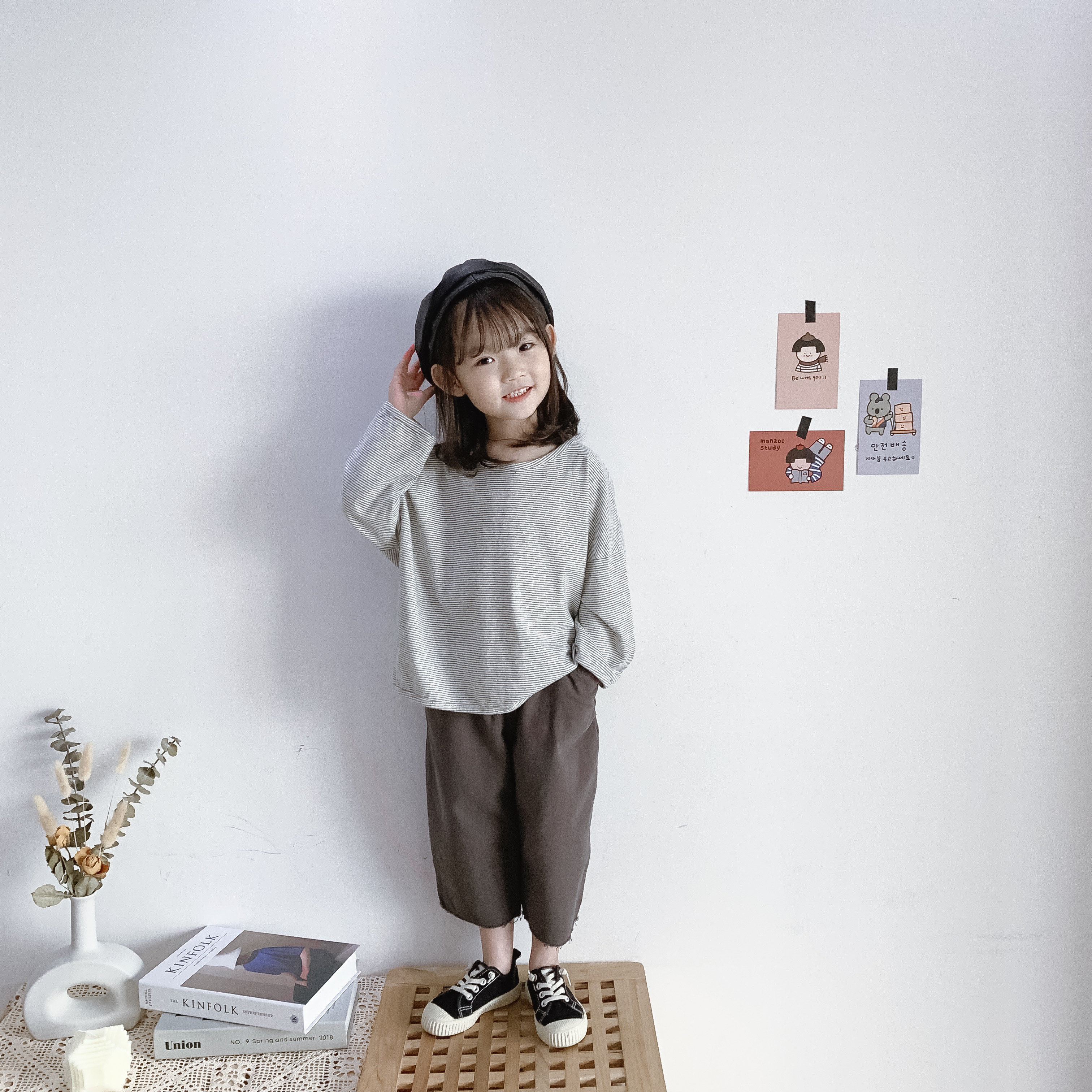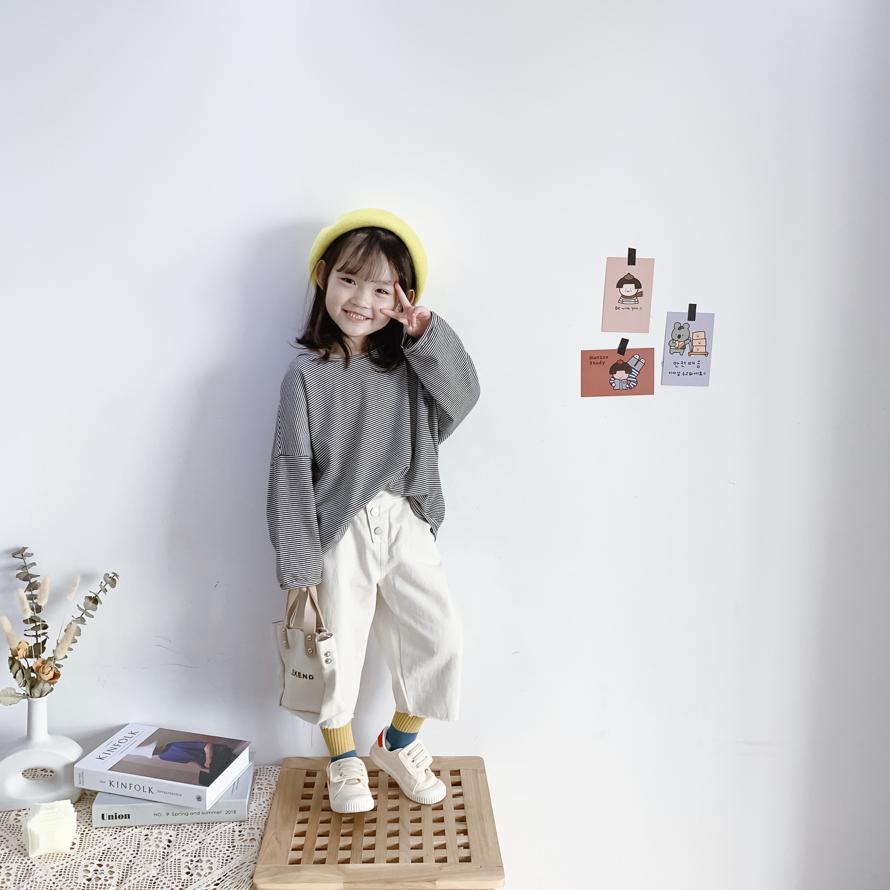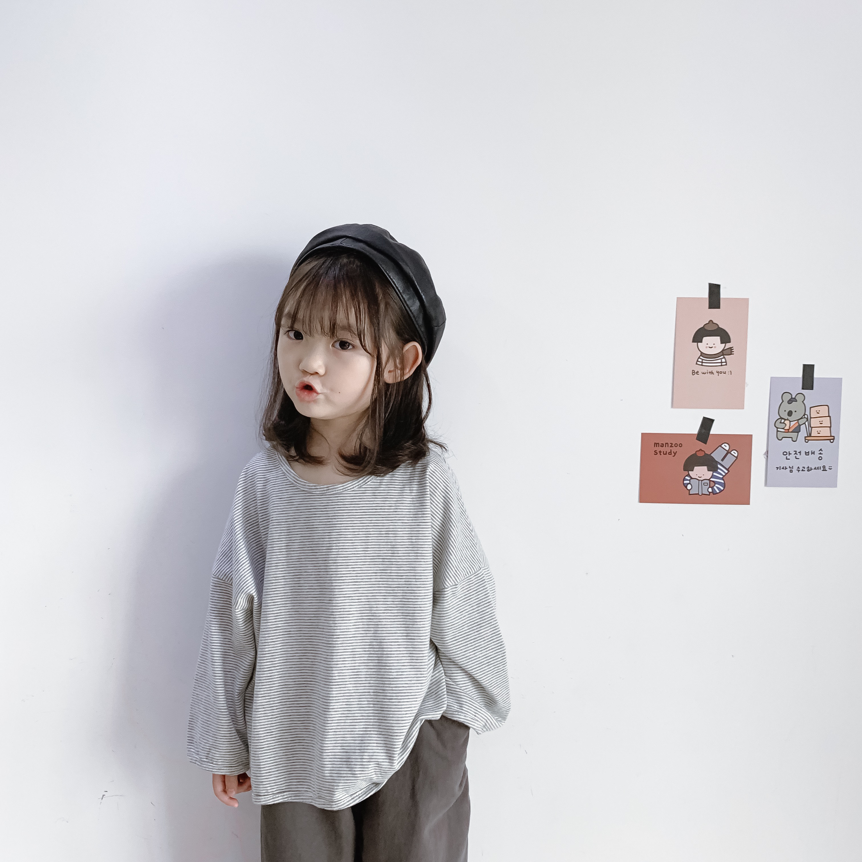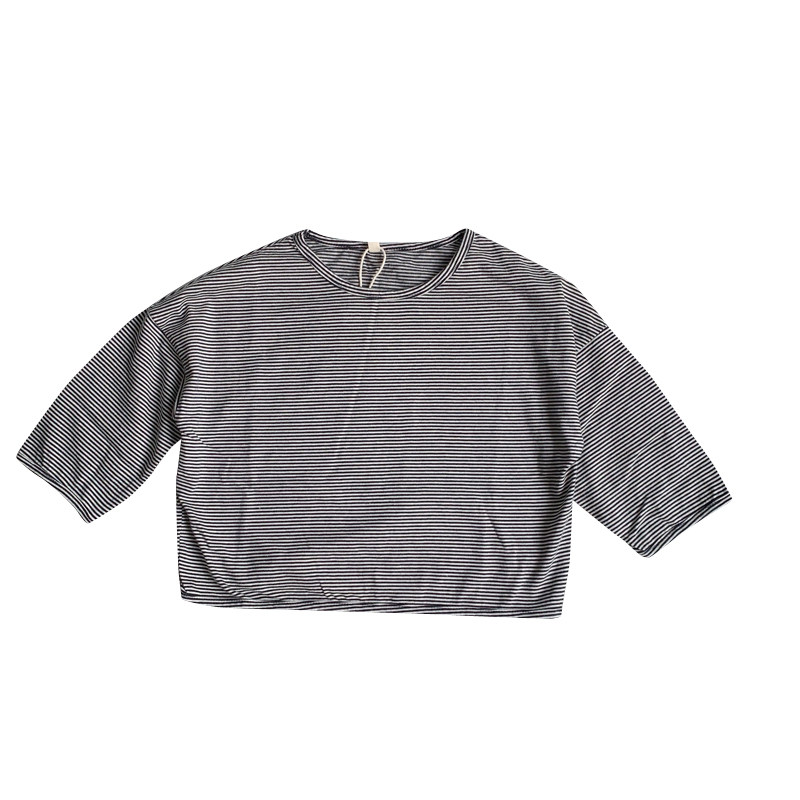 Bean Bag Monarch Spring Autumn male and female children Baby neutral 100 Lap Loose Retro Striped Casual Long Sleeve Inner lap T-shirt