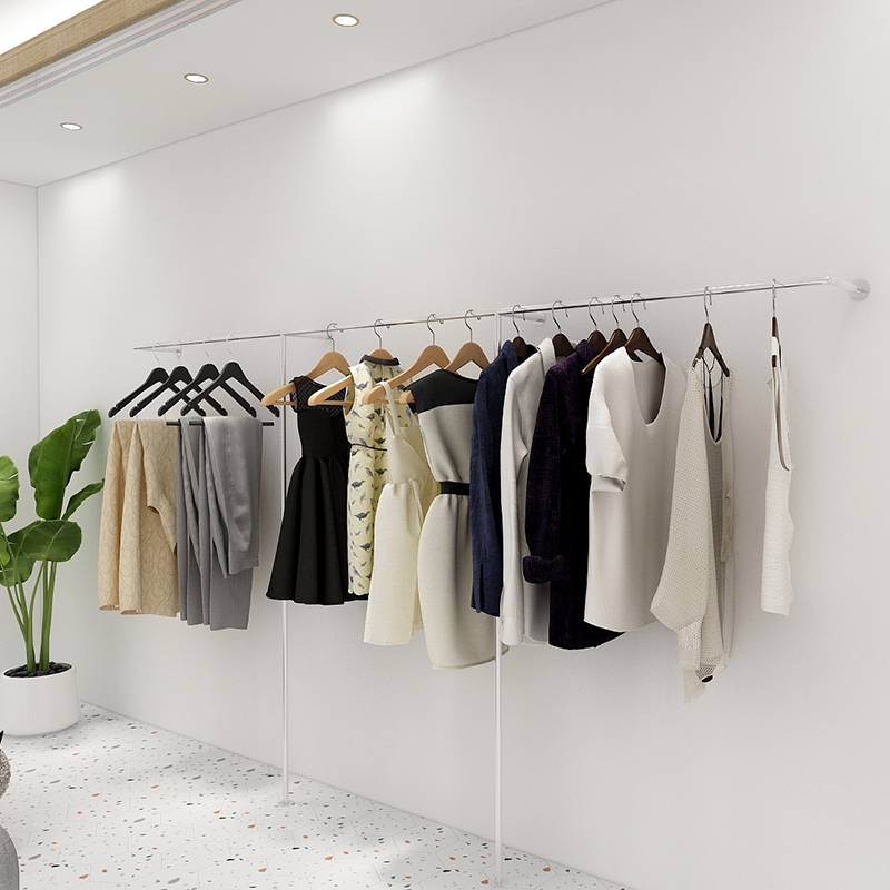 Clothing Store Show Shelves Landing Style Clothing Racks Stainless Steel Shelves Women's Clothing Hung Clothes Hanger Storefront Mesh Red Display Racks