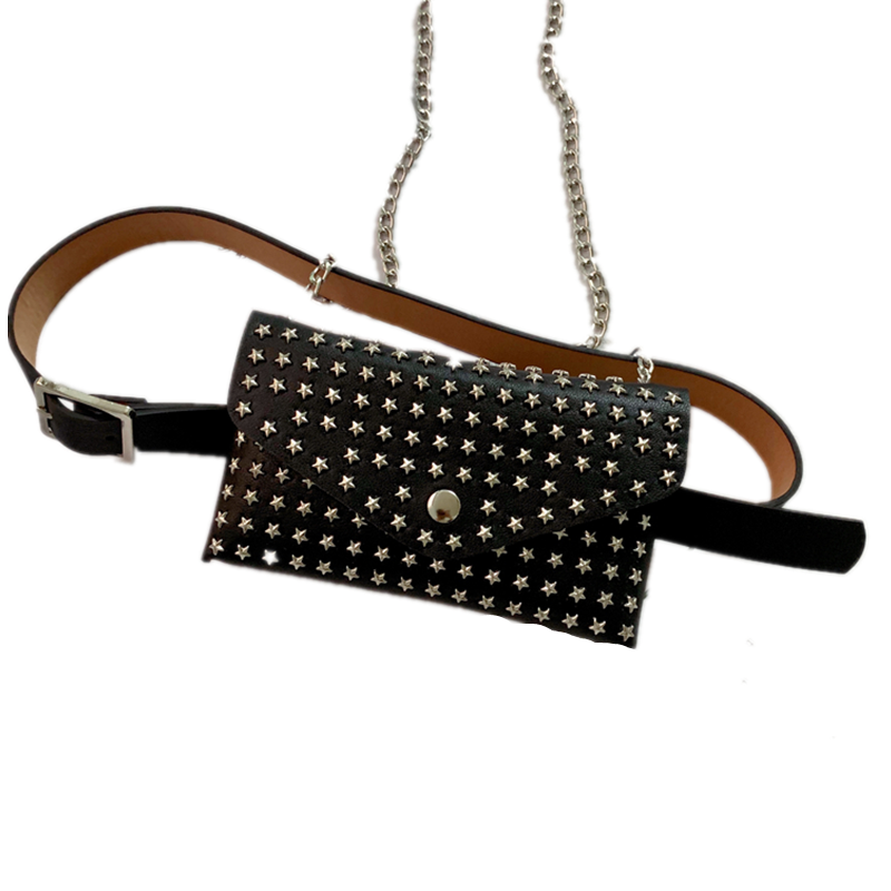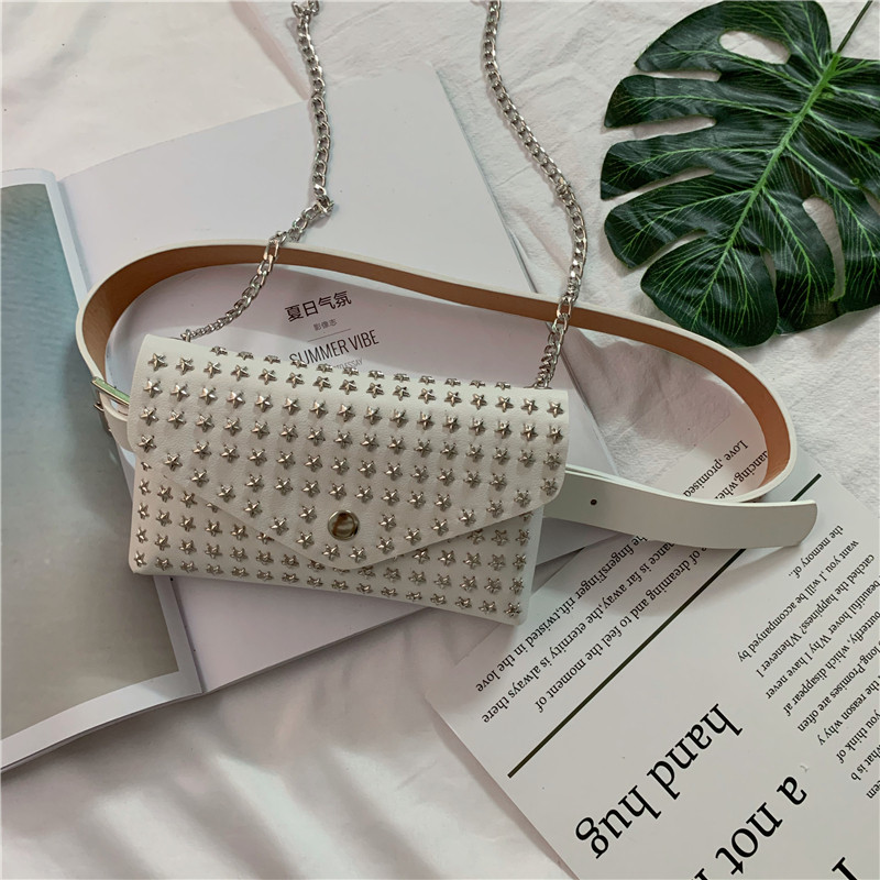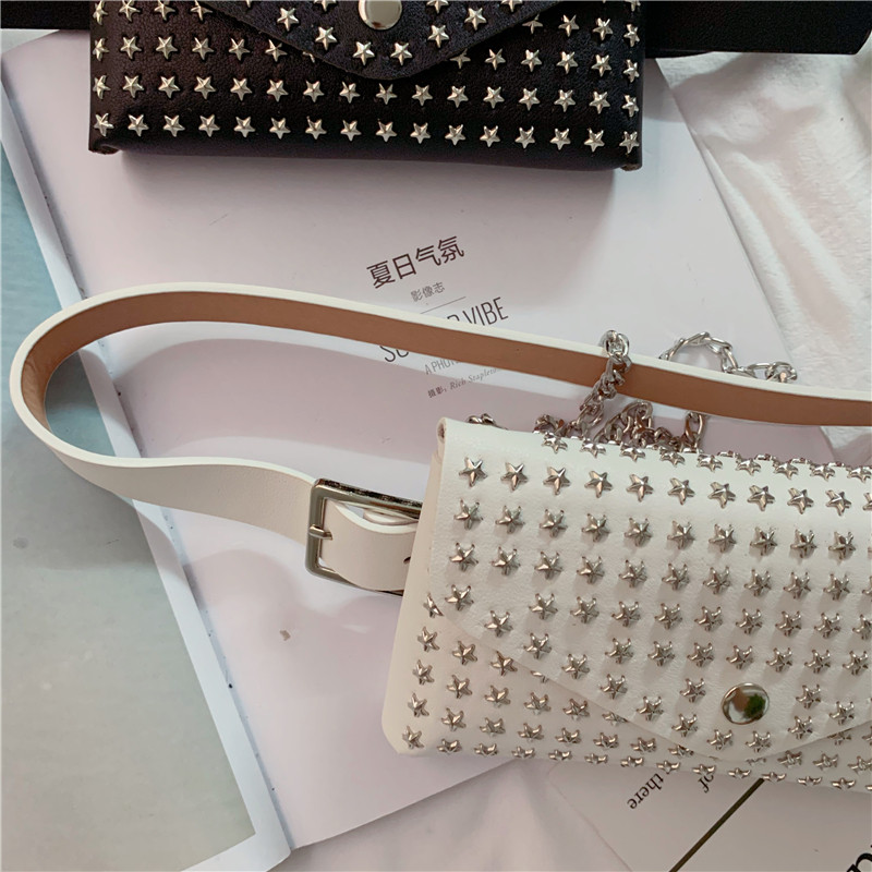 2020 new Korean version punk wind star rivet pockets fashion 100 lap belt women ins chain strap small bag