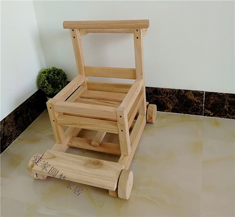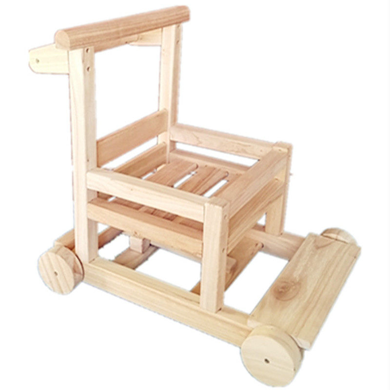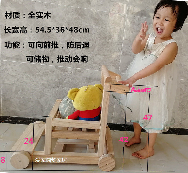 Traditional baby walker trolley toy can sit solid wood baby multifunction game car anti-back gift