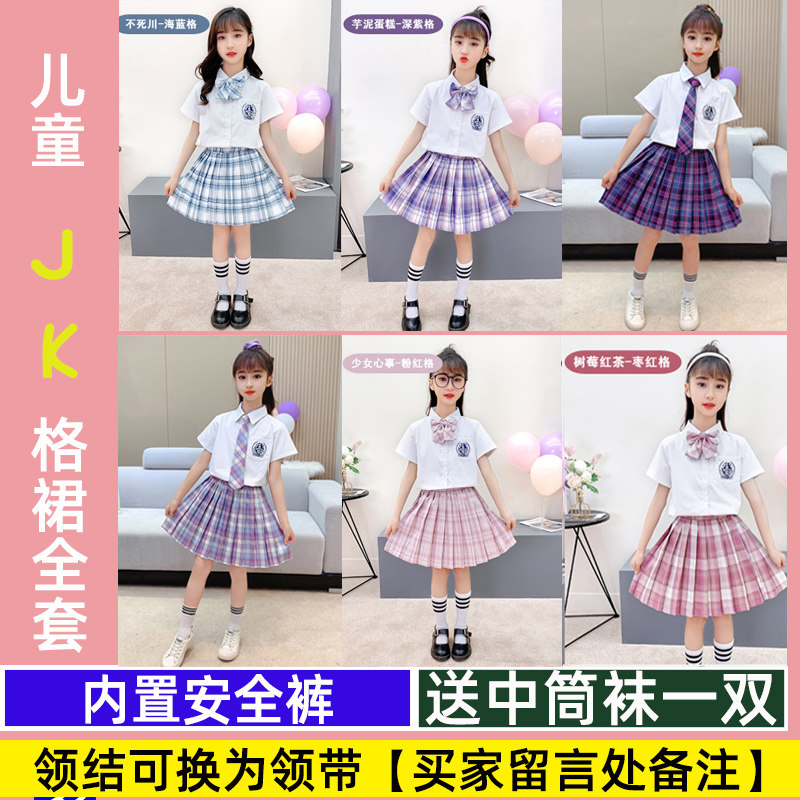 Children's jk uniform summer grid skirt 12 girls girlfriend gk skirt primary school birthday long-sleeved college style suit 10 years old