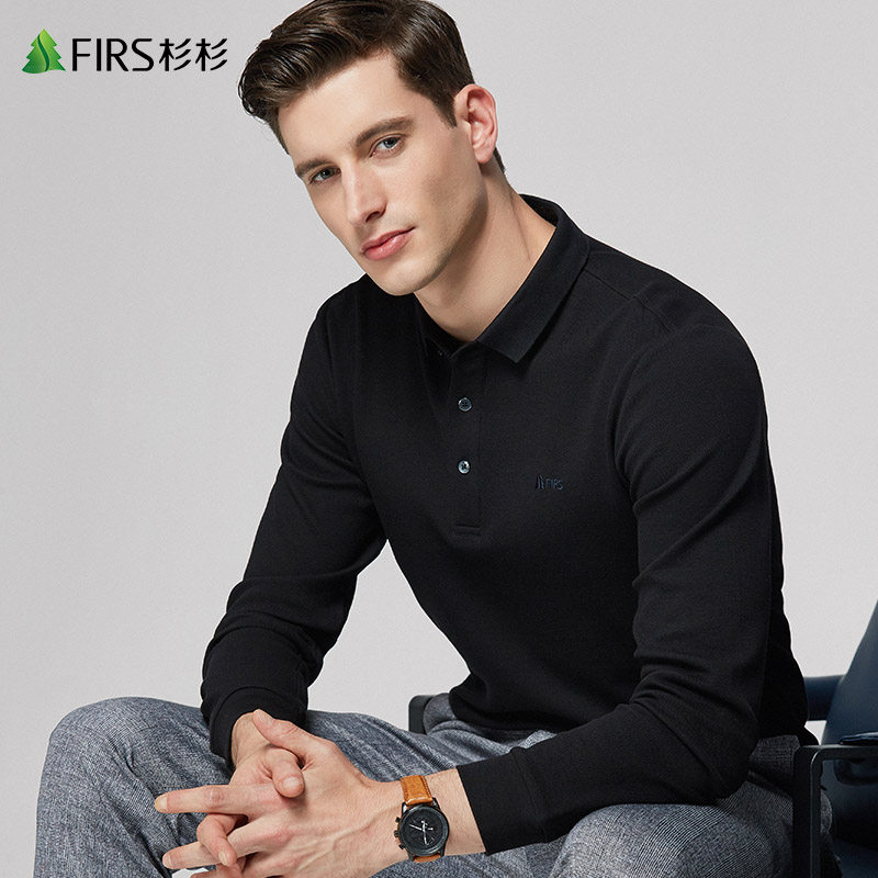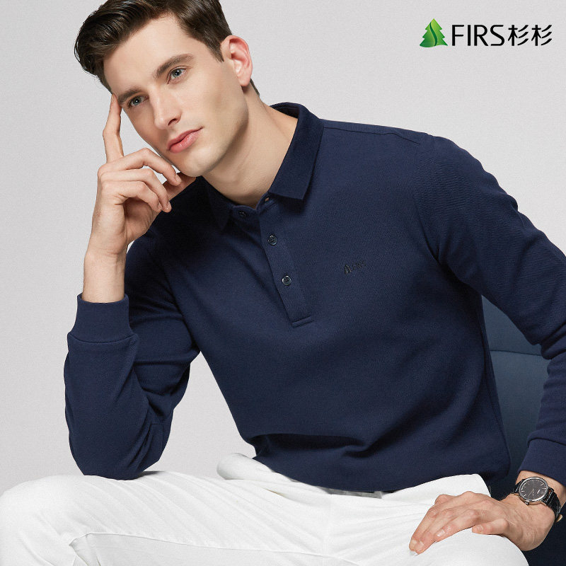 Cedar long sleeve T-shirt male 2022 spring new middle-aged men loose pure cotton polo shirt turned t-shirt men's clothing