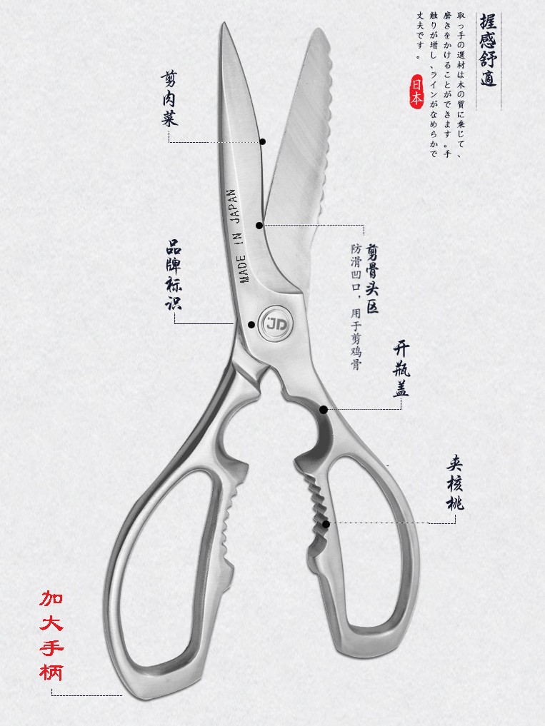 Japanese kitchen scissors all steel scissors stainless steel chicken bone scissors home scissors scissors chicken bone killing fish large scissors