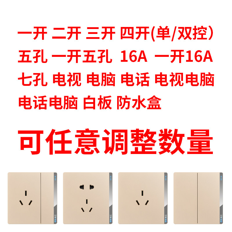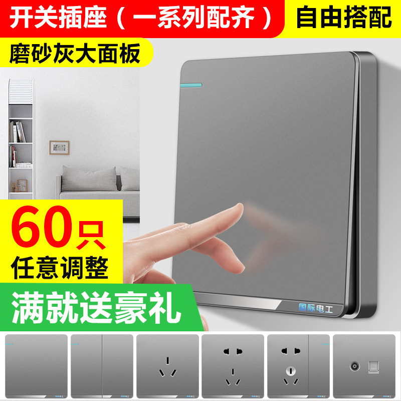 International electrician switch socket 86 type household gray switch panel 16A five-hole socket with switch USB package