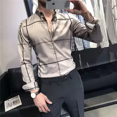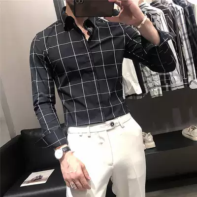 Hong Kong trendy brand spring and autumn shirt men's long-sleeved Korean version of the trend men's plaid shirt British style casual slim men's clothing