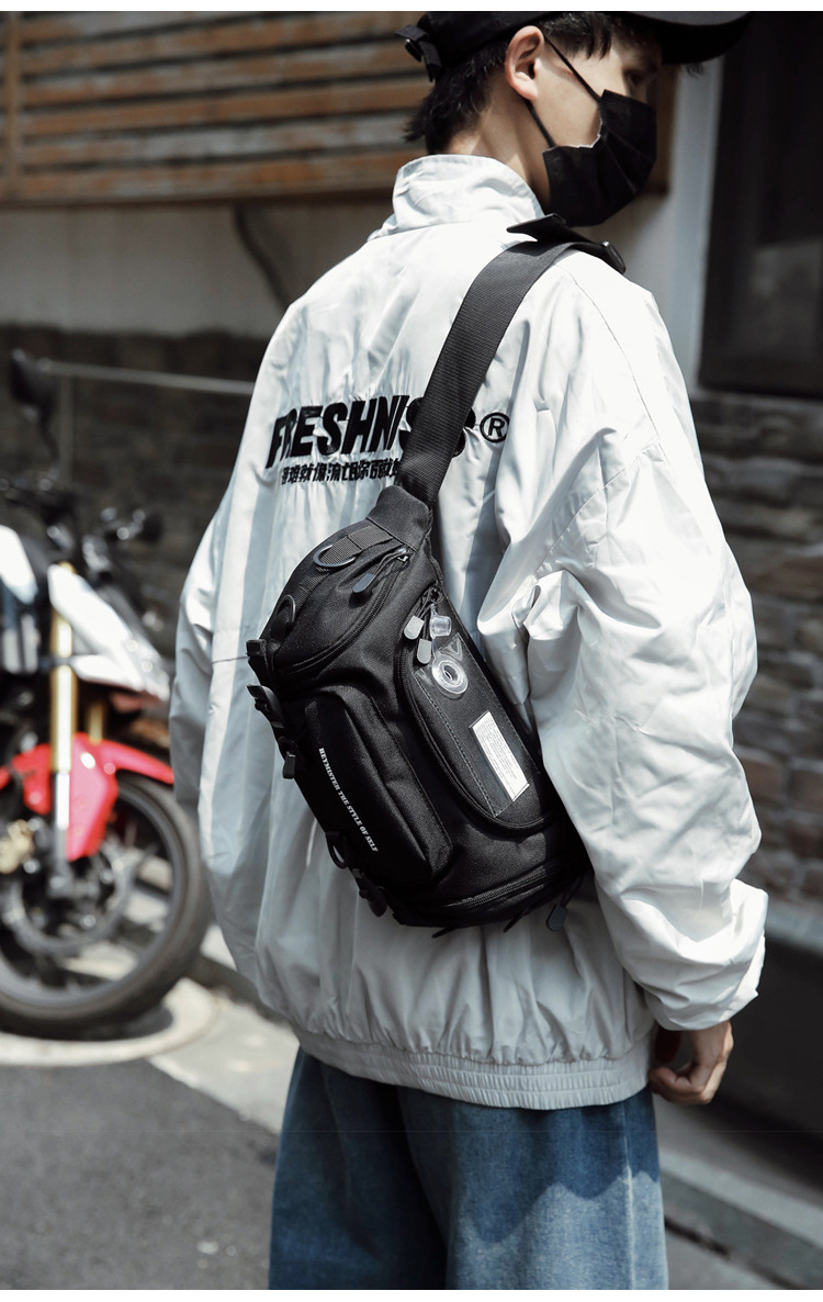 The new ins motorcycle wind oblique cross-bag multi-function fanny pack men and women tide brand shoulder chest bag Bundy outdoor mobile phone bag