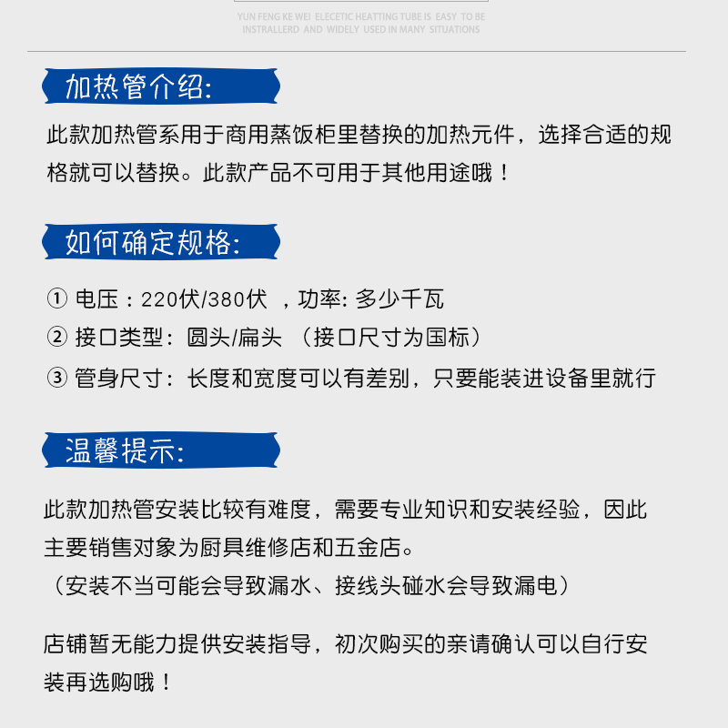 Round Head Steamed Rice Machine Heating Tube Flat Head Steamed Rice Cabinet Electric Heating Tube Steam Box Heating Tube 380v12kw 380v12kw 9kw 220v6 220v6