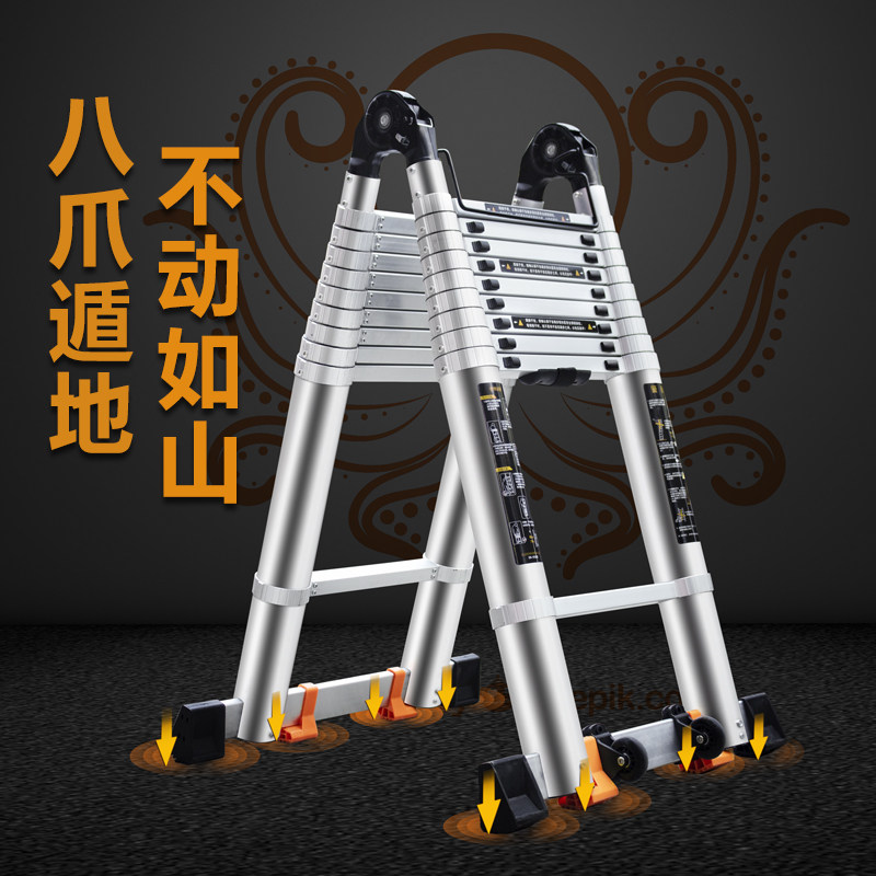 Earth's ladder thickened full aluminum alloy telescopic ladder Villa Pick Up Empty Folding Shrink Lift herringbone ladders 5 m 6 m
