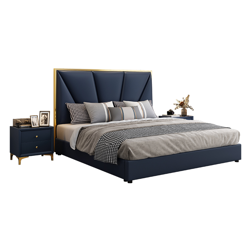 Leather bed latex cotton mattress 2 cabinets (mattress with spring)