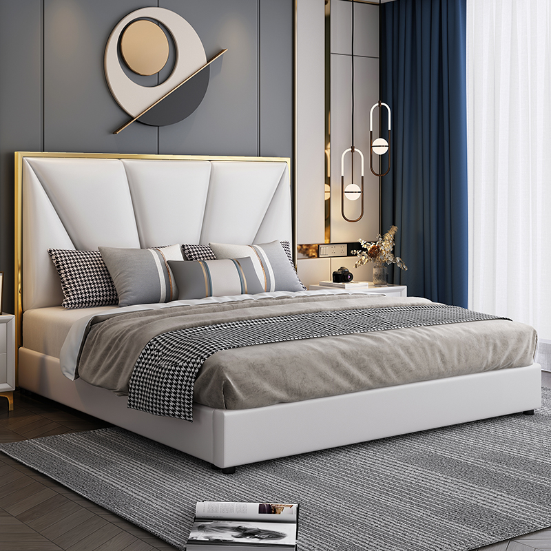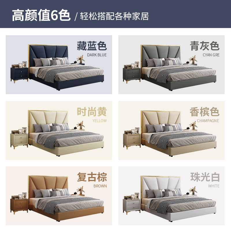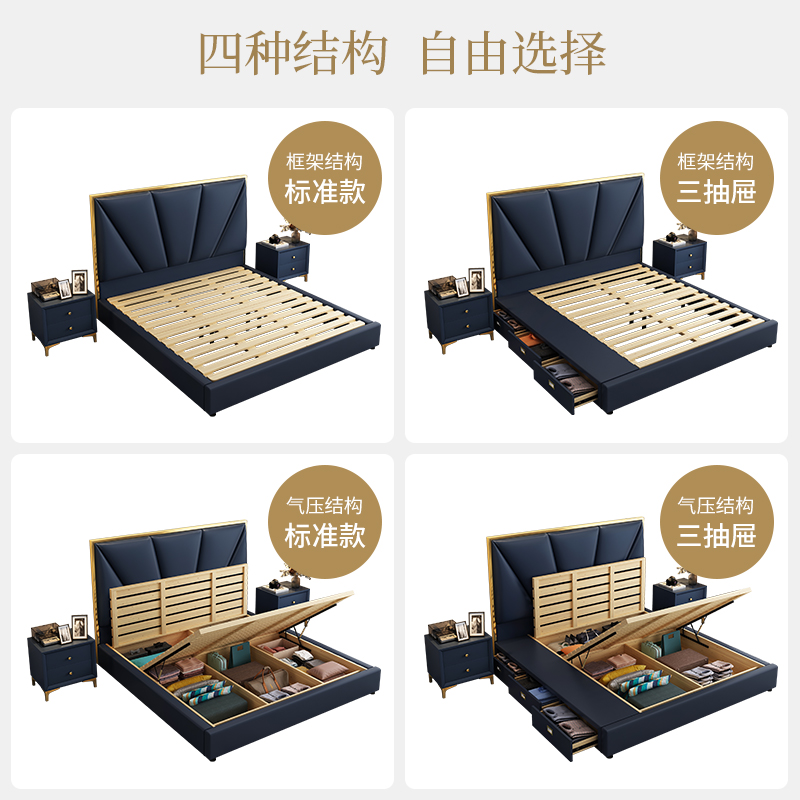 Leather bed 1 8 meters light luxury American style solid wood bed INS simple modern storage tatami wedding bed Internet celebrity 1 5m bed