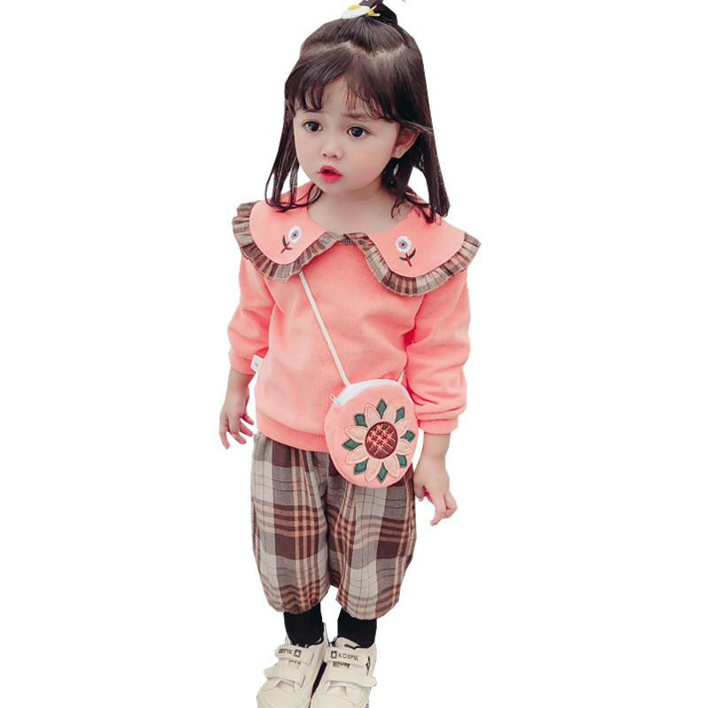 Female Baby Suit Fall New 2022 Baby 1-2-3-year-4 4 Children fit pure cotton long sleeve Korean version two sets of damp