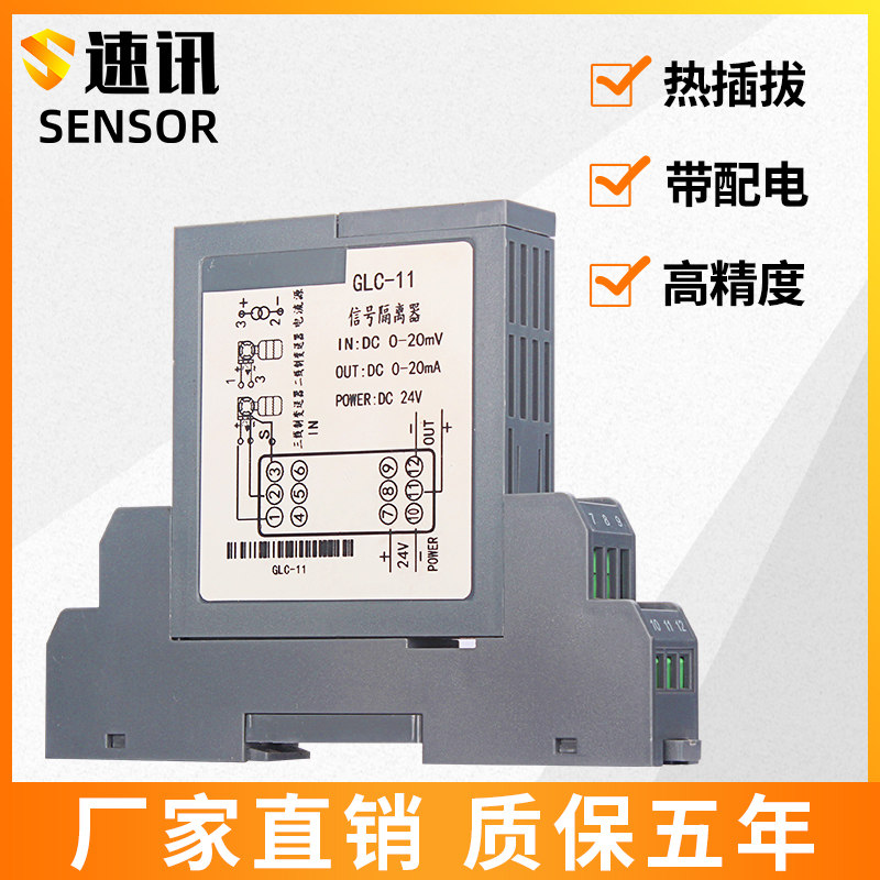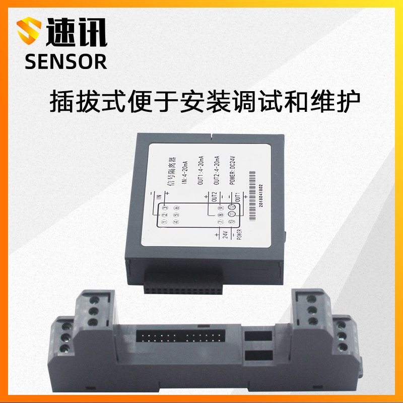 Plug-in DC signal isolator one in two out 4-20mA analog to 0-10V5 distributor 0-75mV