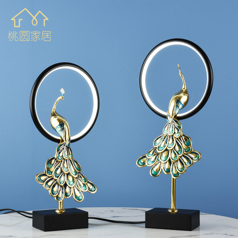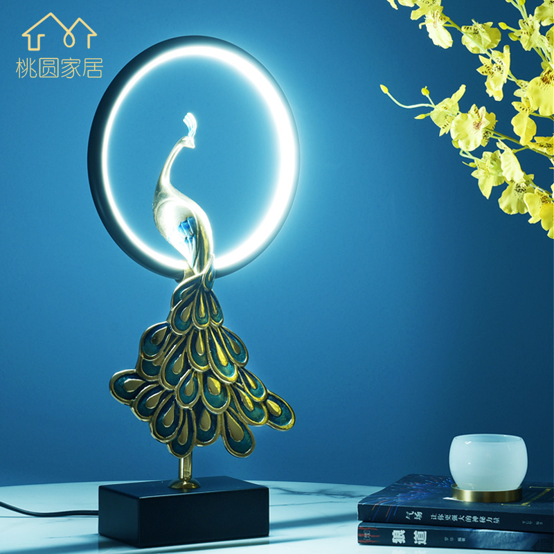 New Chinese style Zen Serie peacock with light swing pieces Living room Xuanguan Sofa Sides A Few Bedrooms Light Lavish Home Light Circle Adornment