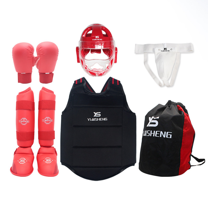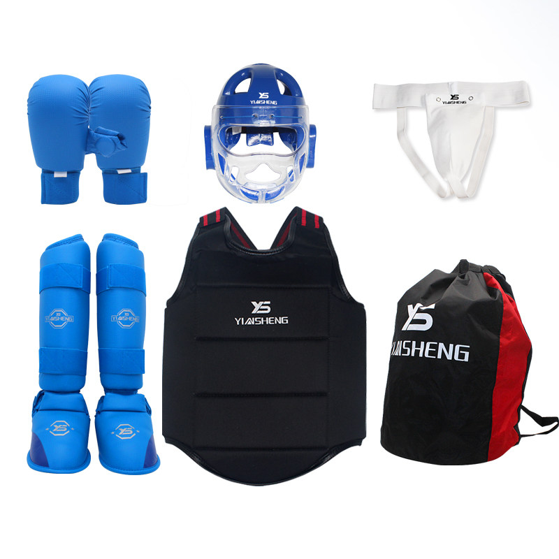 Silver Shengkarate Fist Protection Hand Protection Leg Guard Foot Back Extreme real protective helmet Safety Helmet Safety Helmet armor Composition Full set