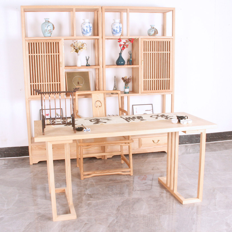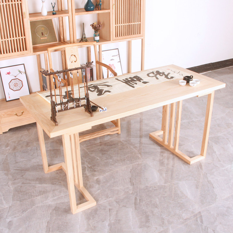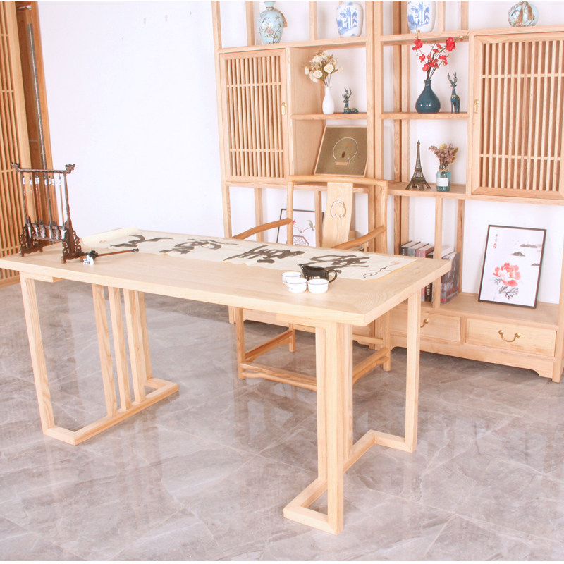 New Chinese ash wood calligraphy table solid wood desk computer desk desk tea table Zen calligraphy and painting table Chinese painting table