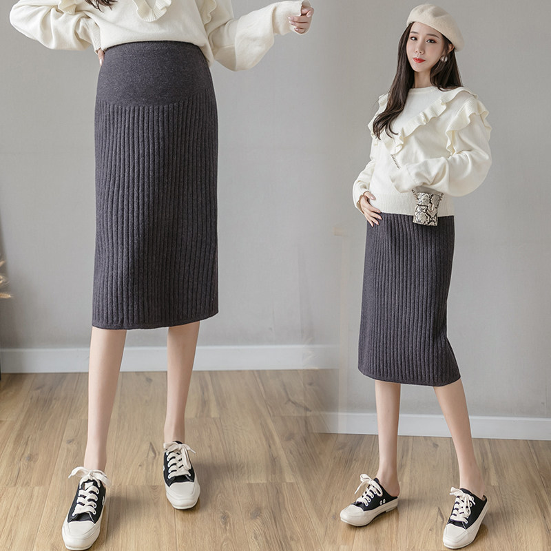 Pregnant woman half-body skirt Autumn Winter Knit Dresses Long Skirt outside wearing winter medium Long version wool line Short skirt Step Hip Skirt