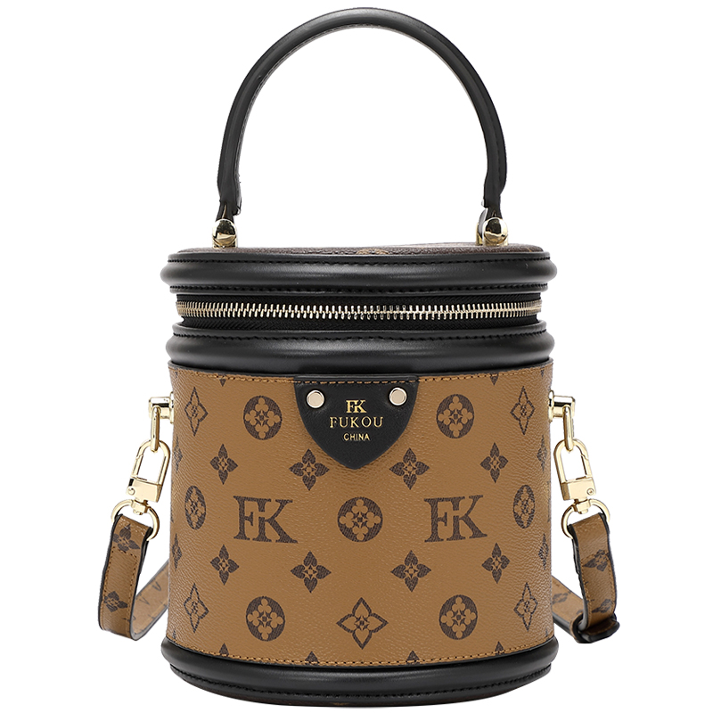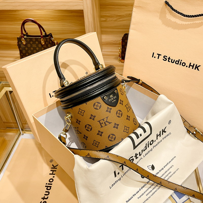 Hong Kong leather bucket bag female 2022 new bag autumn and winter old flower cylindrical messenger hand-held cylinder bag