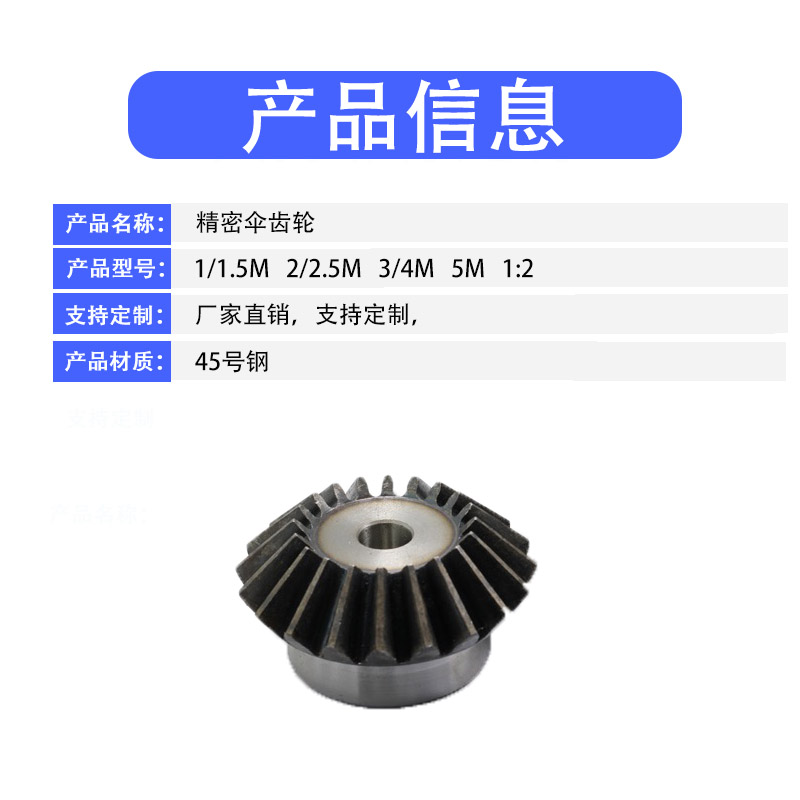 5 mode 1 to 1 umbrella gear 45 degree cone gear right angle 90 degree gear custom transmission quenching 45 steel