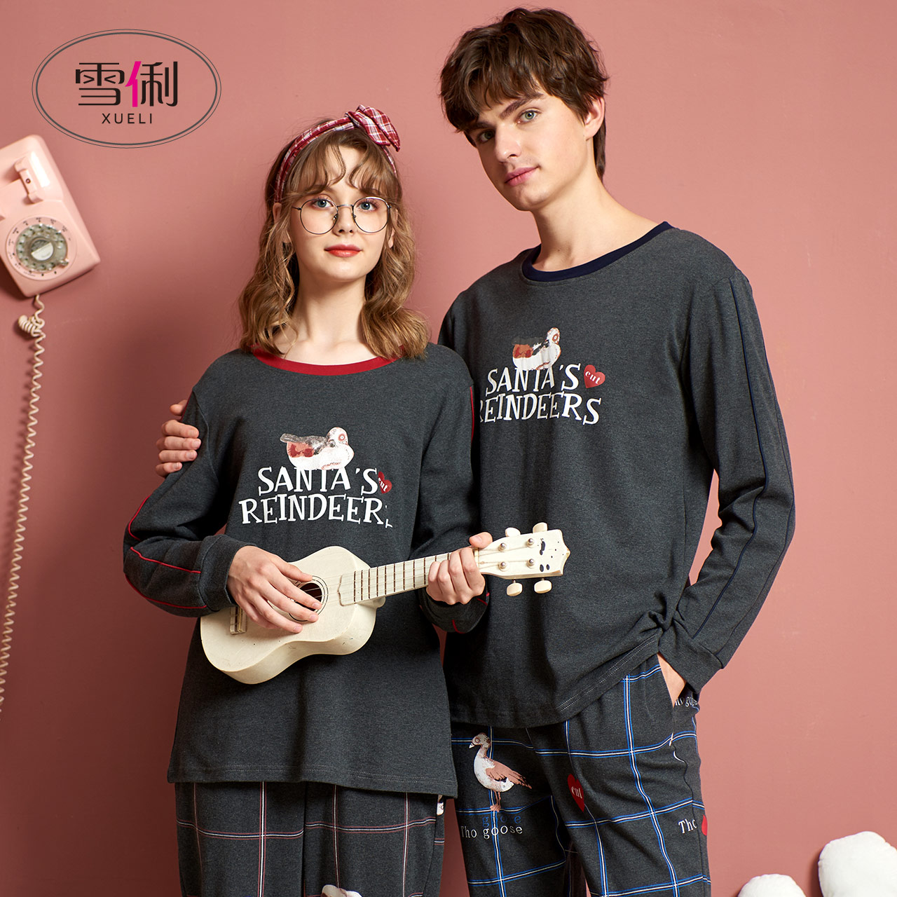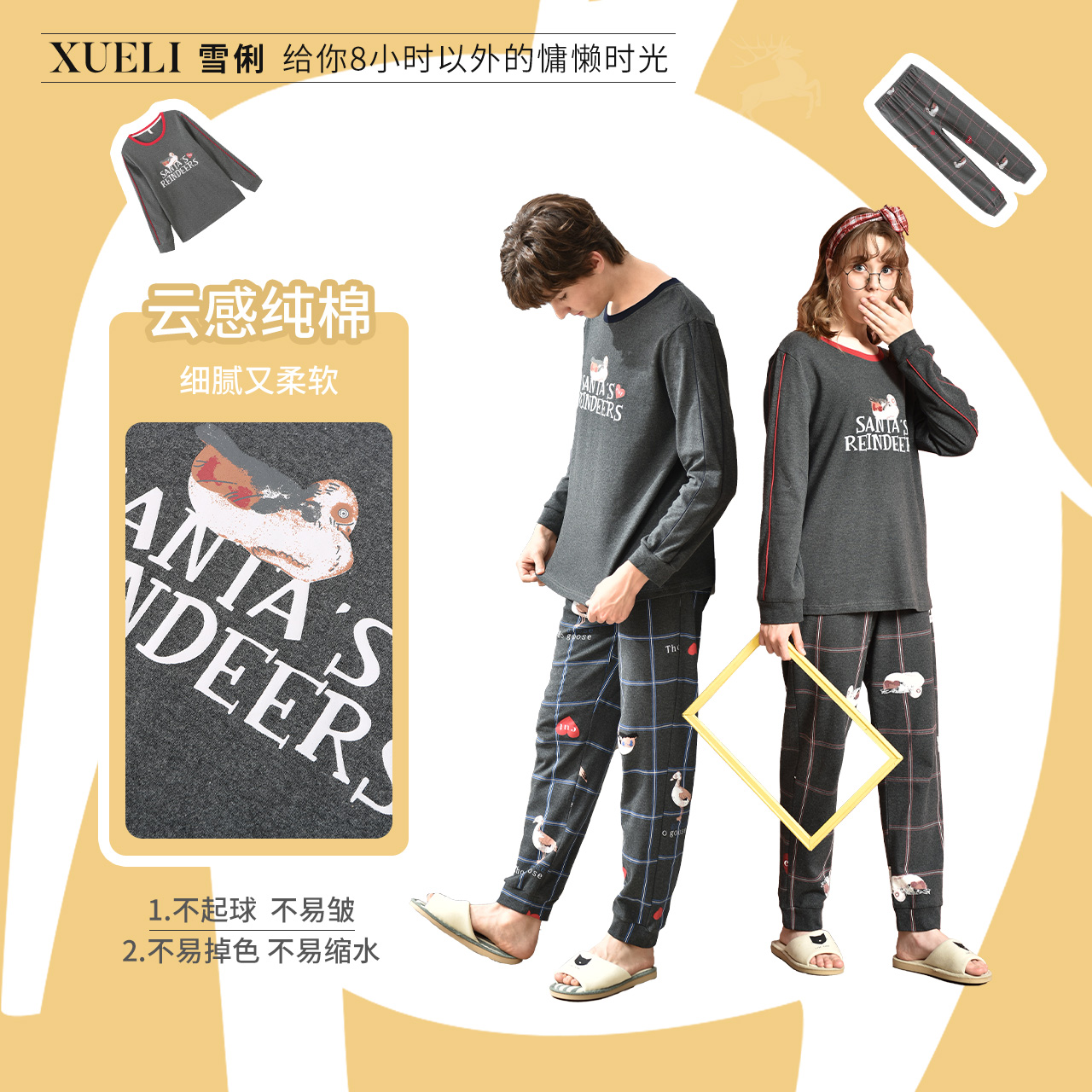 Snow Li pajamas men's spring and autumn cotton long sleeve pants men's plus size round neck medium thick cotton loungewear set