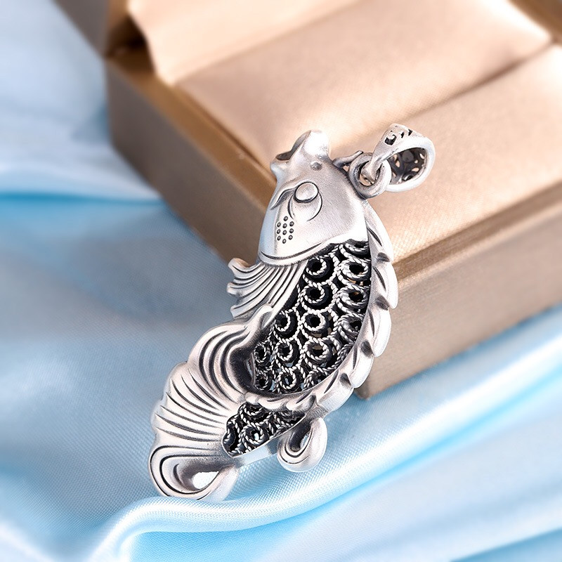 Sterling silver 999 filigree koi pendant retro fashion hollow out every year there are fish men and women sweater pendant silver pendant