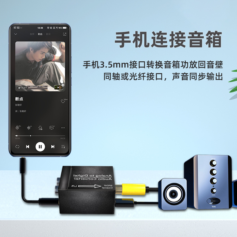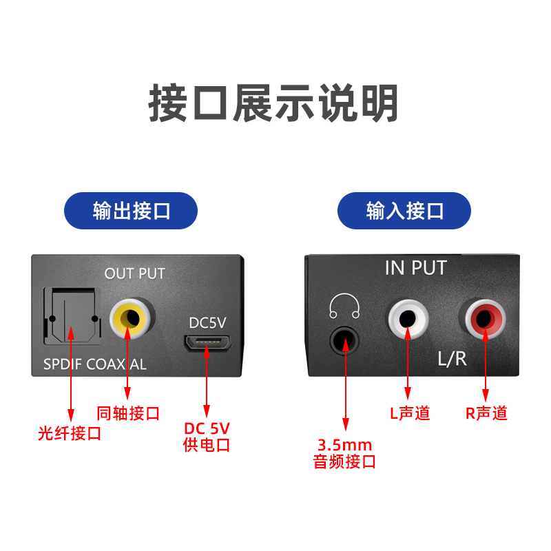 Analog to digital converter 3 5mm red and white 2RCA to fiber opt coaxial spdif audio converter