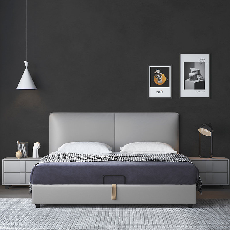 Nordic genuine leather bed small family type 1 8 m double bed with thin headboard wedding bed modern minimalist bed master bedroom with light and luxurious bed