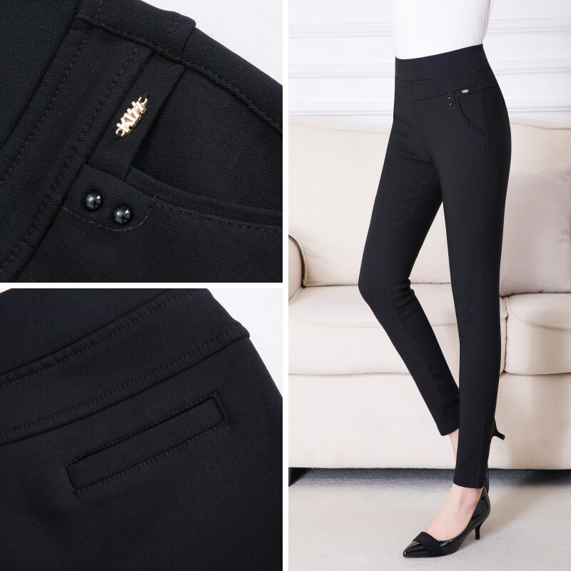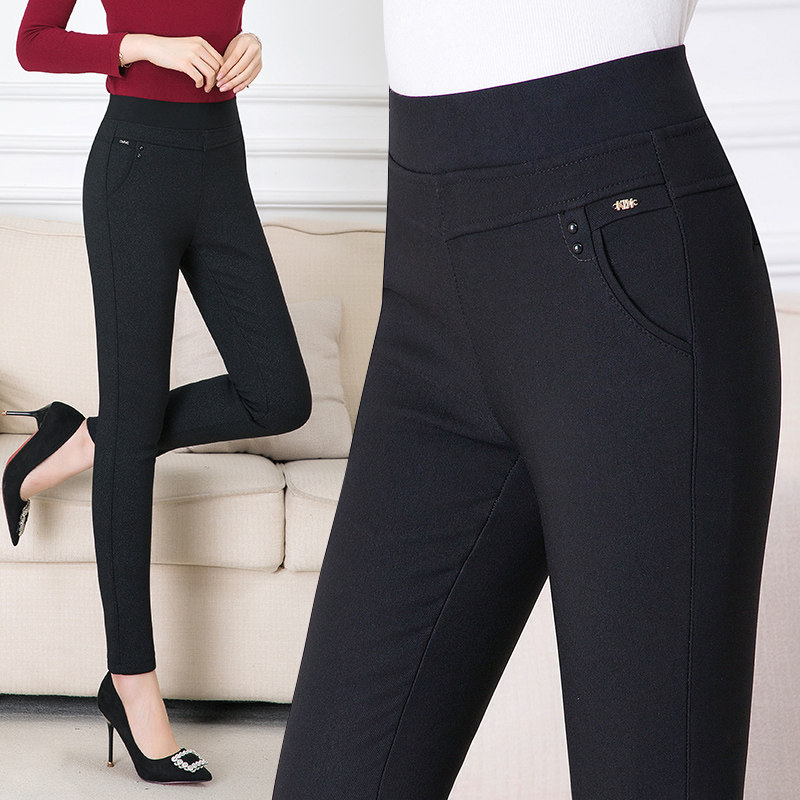 Mom pants spring and autumn straight pants trousers high waist loose large size elastic outside wear middle-aged women's pants casual pants women