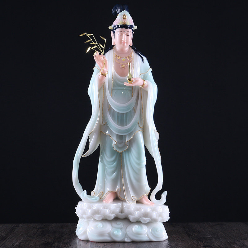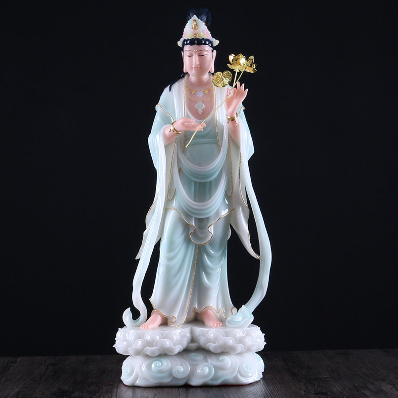 Avalokitesvara Bodhisattva Amitabha Buddha Statue Han Baiyu Western Sansheng God Statue Avalokitesvara Bodhisattva Worship Ornament