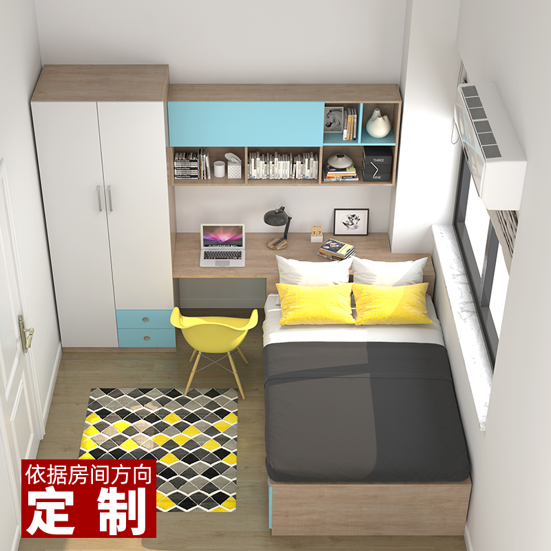 (Solid wood particle board) 1.2 meters storage semi-high bed + side hanging cabinet + 0.8 meter wardrobe + cabinet ladder (solid wood particle board) 1.2 meters bed + 0.8 meters wardrobe + desk + hanging bookshelf (solid wood particle board) 1.2 meters storage semi-high bed + side hanging cabinet + 0.8 wardrobe + cabinet ladder + desk + bookshelf