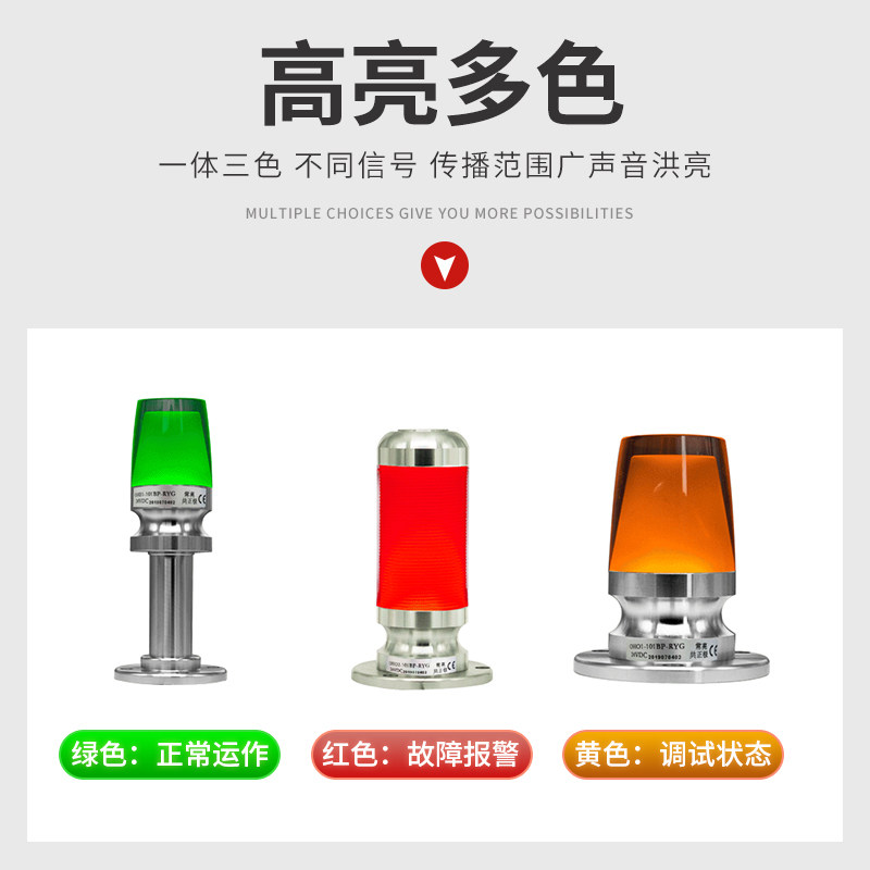 One-piece tri-color alarm indicator LED sound and light alarm machine tool signal light tower single-layer warning light 24V