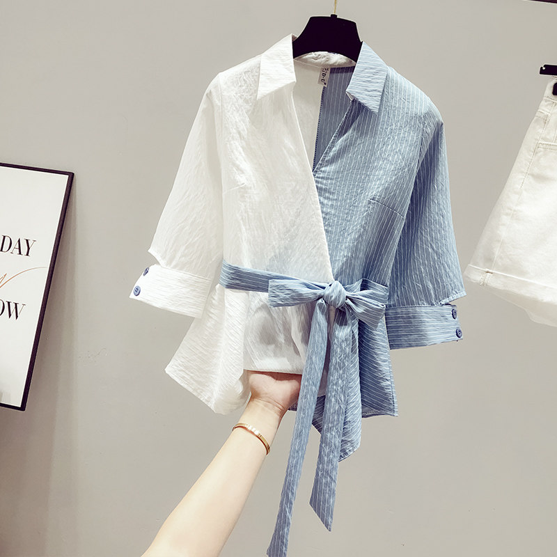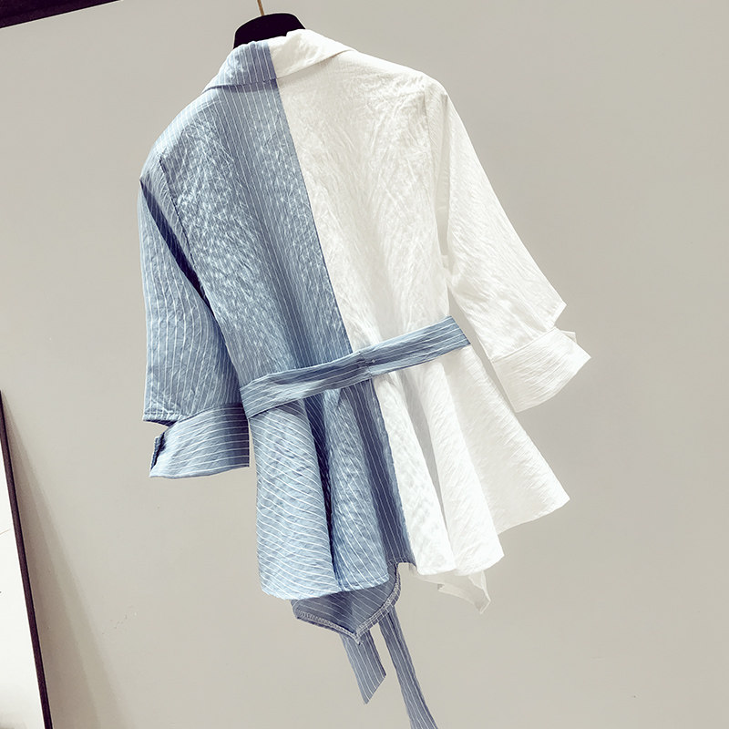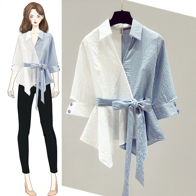 ocnltiy 2023 new blouses with slim fit 100 lap shirt design Irregular Retro Lady Shirt Woman-Taobao